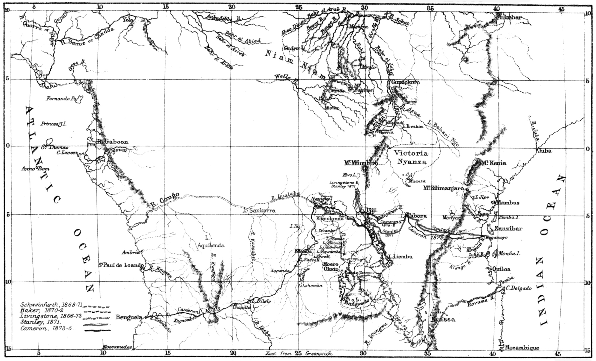 | 2. | Lieut. Cameron, R.N. | ” | Bagamoyo to Benguella | 1873-1875. |