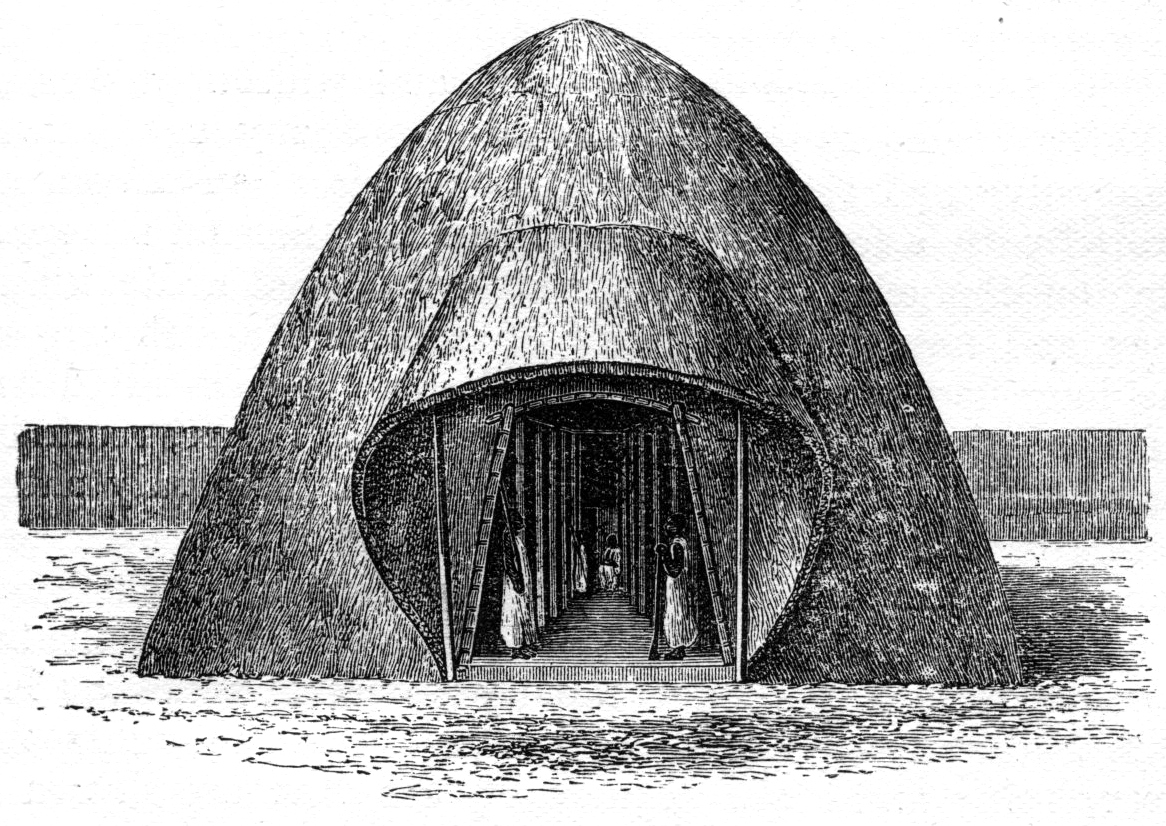 We journeyed to the important village of Usagusi on the 12th, in a south-south-west direction. Like Serombo, Myonga’s, Urangwa, Ubagwé, and Msené, it is strongly stockaded, and the chief, conscious that the safety of his principal village depends upon the care he bestows upon its defences, exacts heavy fines upon those of his people who manifest any reluctance to repair the stockade; and this vigilant prudence has hitherto baffled the wolf-like marauders of Ugomba.