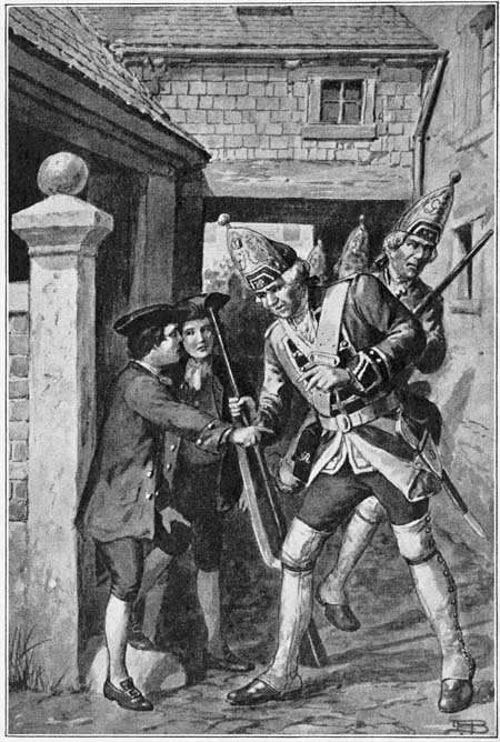 As I have said, it was on the tip of my tongue to tell Jeremy that we were but wasting our time here while we could be more pleasantly employed elsewhere, when there arose a sudden commotion nearby the door of the coffee-house, and in a twinkling I saw three of the red-coated, swaggering officers fall to the ground as if suddenly stricken with death.