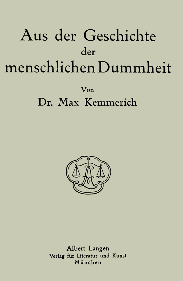 Eine Geschichte der menschlichen Dummheit zu schreiben überstiege meine Kräfte: sie müßte umfangreicher werden, als die chinesische Enzyklopädie. Darum begnüge ich mich mit diesem Streifzuge, der einem ganz bestimmten Gebiete gilt. Der Zufall war es nicht, der mich leitete.