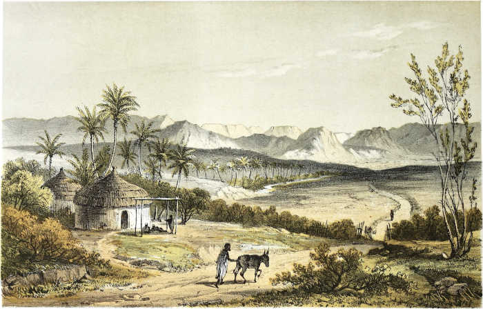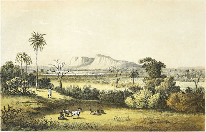 | Uncertain Distance from Timbúktu. — Departure from Dóre. — The Ponds or “Wéndu.” — Providentially detained in Wúlu. — Numerous Sheets of Water. — Difficult Watercourse. — Serious Encounter. — Crossing a Swamp. — Áribínda. — Fíliyo, a Songhay Village. — Independent Character of Inhabitants. — Tinge. — Ground Plan of Dwelling. — Character of Inhabitants. — Habits of Industry. — Heavy Rains. — Caillié’s Kissour. — Fúlbe Cattle Breeders. — Hómbori. — The Black Worm. — Kúbo. — District Tondi. — Craftiness of El Waláti. — March of Red Worms. — Isolated Mounts. — Native Dwellings. — Dúna. — Governor of Dalla. — Mundóro. — Curious Thatchwork. — Hómbori Range. — Variety of Huts of Ísayé. — Approach Hómbori Mountains. — Castellated Mounts. — Bóne. | |