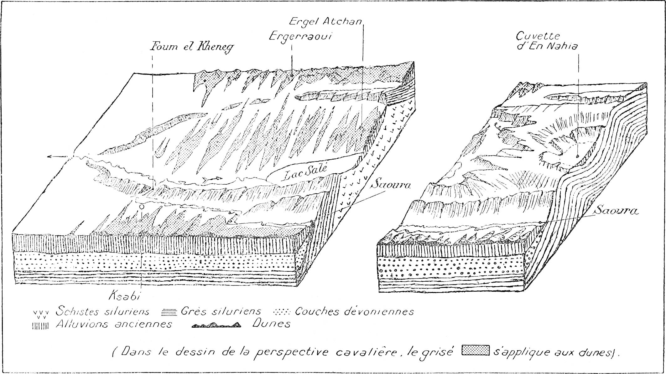 Ce relief du Sahara, qui paraît confus au premier abord, s’ordonne, au contraire, d’après une loi très évidente et très simple.
