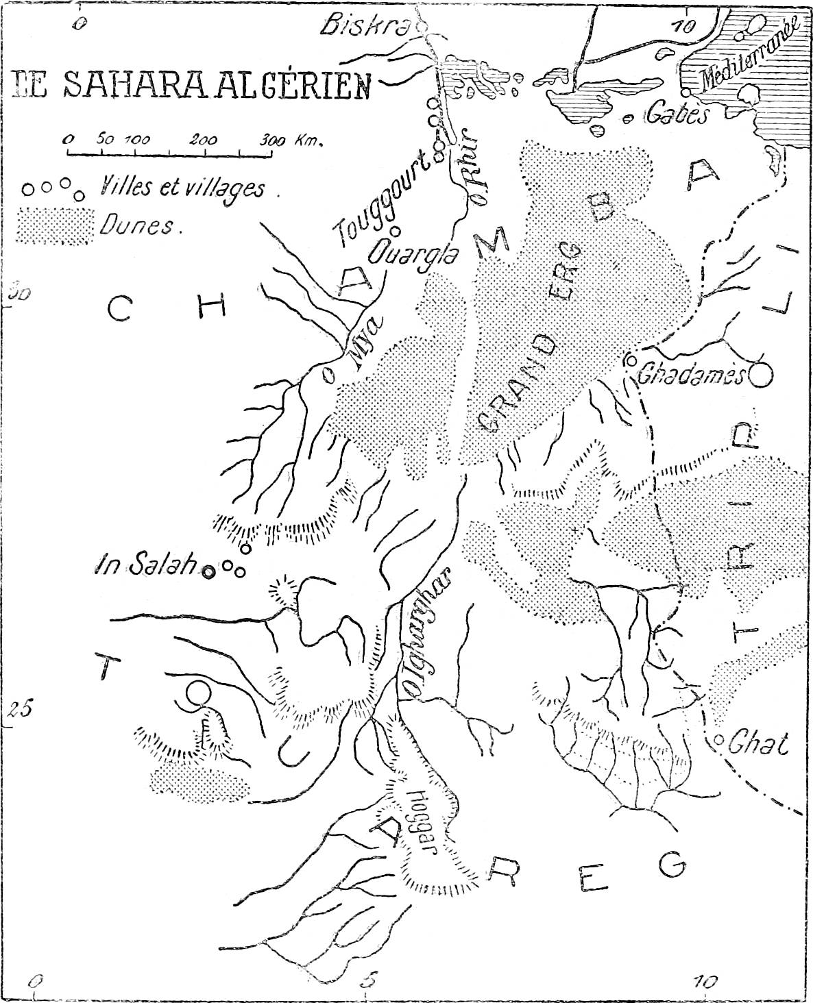| CHAPITRE UNIQUE. — GÉNÉRALITÉS SUR LE SAHARA, SA STRUCTURE, SON CLIMAT, SES LIMITES | 9 |