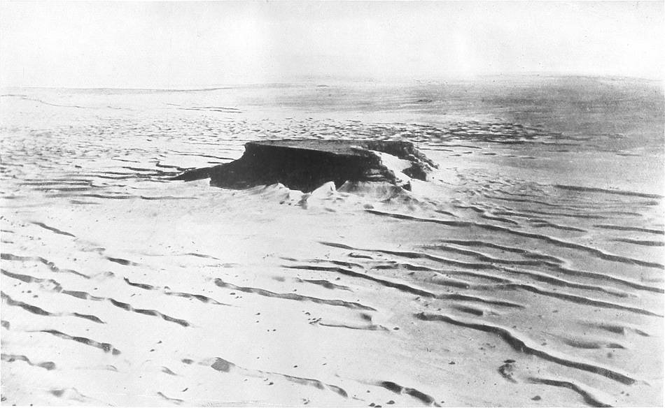 Le Sahara, proprement dit, dans tout le reste de son étendue, est le contraire d’une jeune chaîne plissée ; un équivalent du plateau central français, à la rigueur, et non pas des Alpes ou des Pyrénées. Il serait plus justement comparable aux plateformes russe, sibérienne ou canadienne ; ce que les géologues appellent un « bouclier » ; un bloc de la croûte terrestre resté rigide depuis des âges immenses. Dans certaines parties, et en particulier dans le Sahara algérien, on retrouve les traces de très vieilles chaînes plissées, contemporaines ou ancêtres de celle qu’on appelle en Europe hercynienne dans notre massif central français ou dans le massif schisteux rhénan. Mais ici, comme là, la vieille chaîne usée, arasée jusqu’aux racines de ses plis, a disparu depuis[15] longtemps en temps que chaîne ; il n’en reste plus que les cicatrices, ce que les géologues appellent une pénéplaine, c’est-à-dire en langage commun des plateaux. Dans le reste du Sahara, les calcaires carbonifériens, les grès dévoniens, et même les grès siluriens, se présentent au contraire en lits à peu près horizontaux, sur des espaces immenses. A la surface de la planète, il est rare de trouver des sédiments aussi anciens en assises horizontales, tels qu’ils se sont déposés. On ne les signale qu’à la surface des autres « boucliers » planétaires ; le bouclier russe par exemple, ou canadien.
