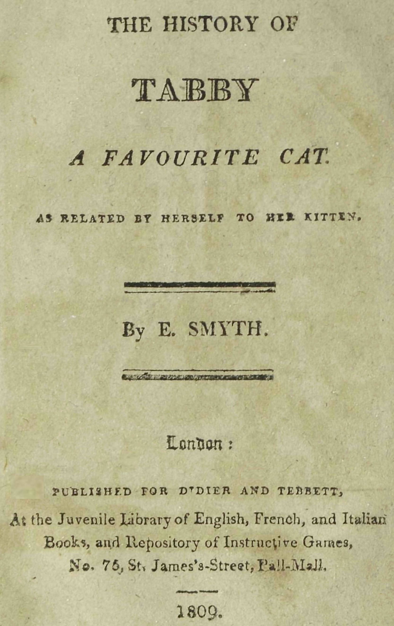 ‘I was born in a pretty little cottage in Hertfordshire; I remember I had two sisters, but they were soon taken away, and what became of them I could never hear: but there is every reason to suppose they were barbarously drowned, as I afterwards found was the common practice with unfeeling people. However, my mother did not seem to feel the loss very severely, but all her affection centered in me: she never left me but to get food. The first human face I ever saw was that of our sweet mistress, Miss Phœbe, [Pg 13]who was then a very little girl; she took me, for the first time, out of the closet in which I was born; and after saying the most flattering things as to my beauty, asked the cottager if she might then take me home. The cottager, who was formerly Miss Phœbe’s nurse, replied that I was yet too young to leave my mother; but that, as soon as I was able to feed and keep myself clean, she would bring me to the hall, for she had kept me on purpose for her. Miss P. kissing me affectionately at the same time, replied, [Pg 14]‘No, no, Betty, you must not carry her, but I will come myself to fetch it; for no one will take so much care of it as I shall. I will bring a little basket for her, with some flannel in it, that it may lie soft; for it is to be my own cat, and I am to feed it and take care of it entirely; so, mind you do not let any one else take it. But now you must go to your mother, you darling beauty, said she to me, and laid me gently down by my mother.’