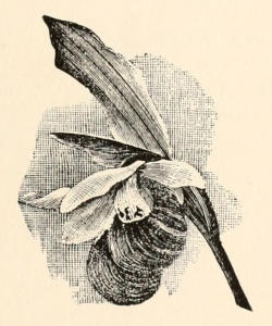 [93] The common name, Putty-Root, arose from the putty-like consistency of the adhesive substance of the old corms or bulbs; used to mend broken china. The name Adam-and-Eve originated with the colored folk in Georgia and Alabama. The bulbs are not disagreeable to eat if baked, and many confess to be fond of them. The colored people in the South are said to wear these bulbs as amulets, and attribute great favor to them in casting lots. By separating the offsets, they designate them Adam-and-Eve, as the rule may be, and placing them in a bowl of water decide their good or ill fortune in obtaining work, or a lover, according as Adam or Eve “pops up.”