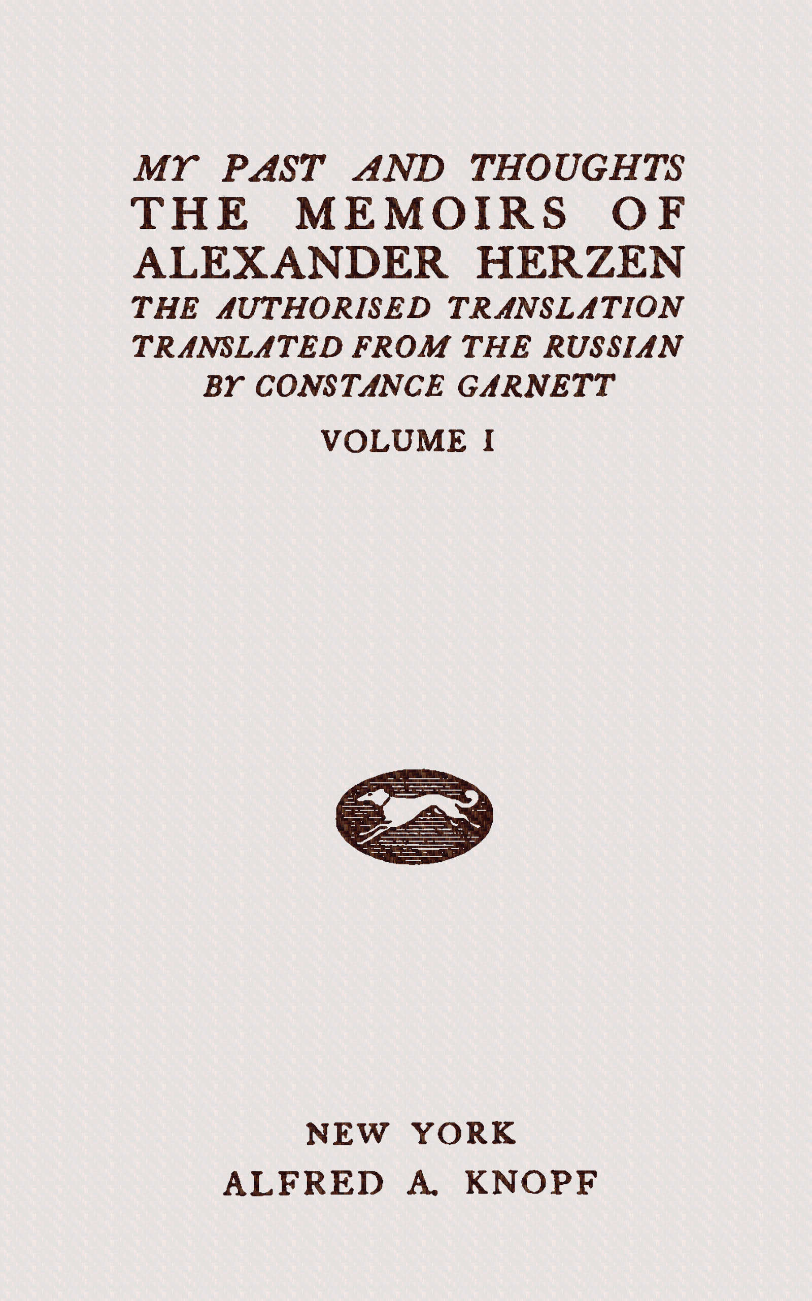 This translation has been made by arrangement from the sole complete and copyright edition of My Past and Thoughts, that published in the original Russian at Berlin, 1921.