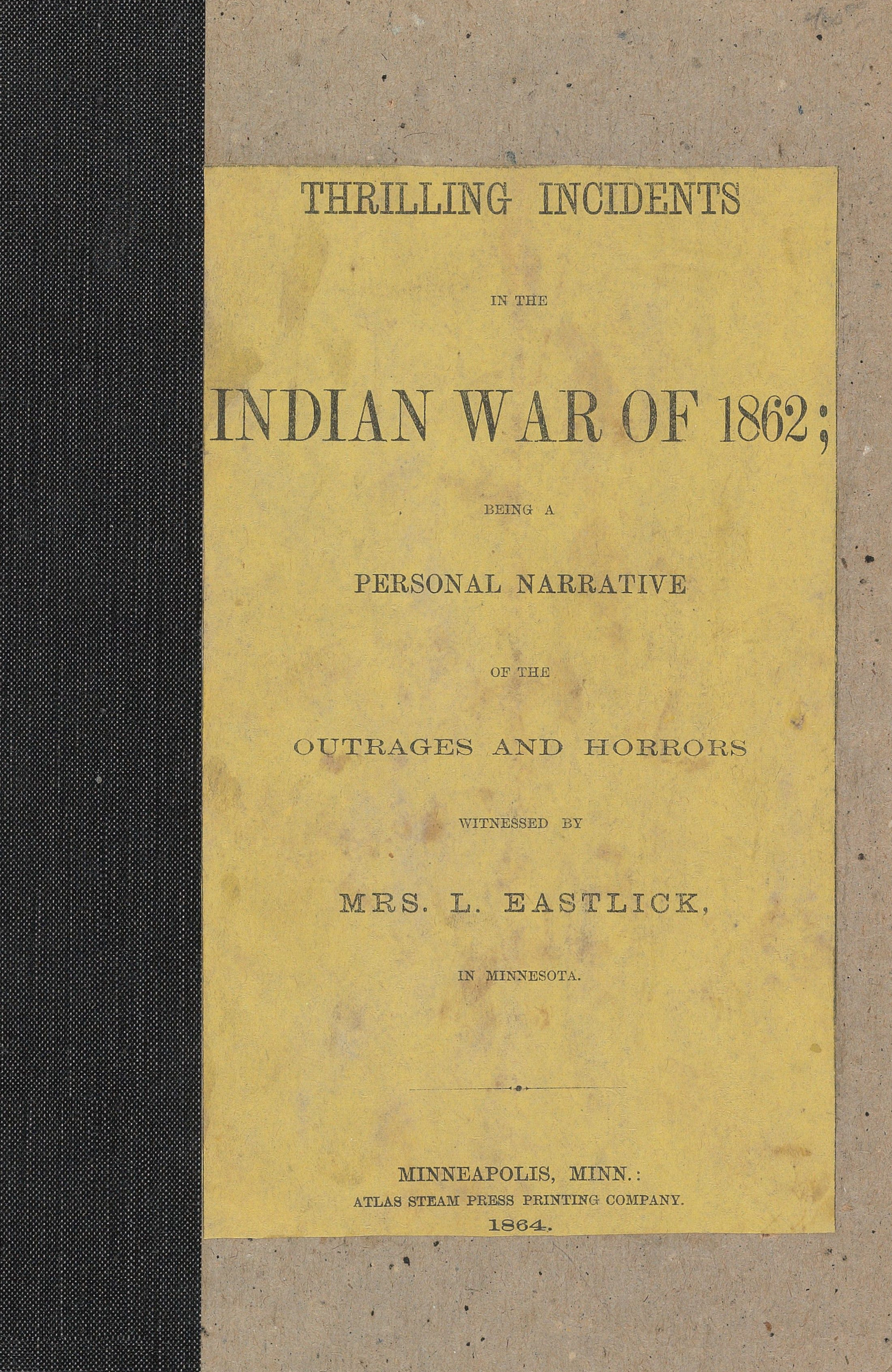 My object in publishing my story is two-fold: I wish to inform the public as to the extent of the wrongs inflicted upon the innocent Minnesotians; and I also hope and expect to realize from the proceeds of its sale sufficient pecuniary aid to enable me to return from my temporary home in Grant County, Wisconsin, to my desolate home in Minnesota—to the region where I left the bodies of my husband and three children, on the bloody sod where they fell.