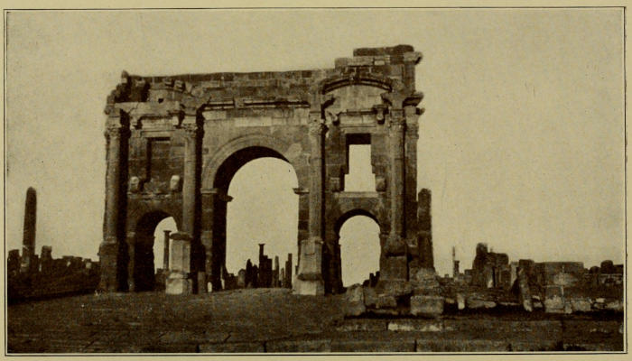 And, finally, we cling to the delusion that Barbary, though doubtless colorful and picturesque, is deficient in monuments of historical or architectural interest, and that the facilities provided for the comfort of the traveler are limited and somewhat crude. Let me remark, by way of answering this objection, that Tunisia is as thickly strewn with Roman ruins as Italy itself; that the scenery of the Grand Kabylia and the High Atlas is as impressive as any in Switzerland; that the mosques and towers and palaces of Morocco were built by the same race which raised the Alhambra and the Alcázar; that the network of motor-roads which cover Barbary compare very favorably with the best highways we have in the United States; and that the hotels which have sprung up all the way from Tunis to Marrákesh are not far removed in luxury from the great tourist hostelries of Florida and California.