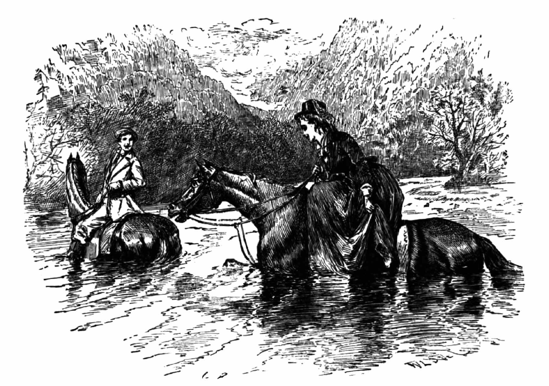 “If I wish to abide by it!” repeats Charley, taking the hand, while the hat drops unheeded, and narrowly escapes floating off down-stream again. “Do you think it likely I wish to do so—after all these years? Sylvia, you know that I love you—that I shall love you till I die—but if you are only drawing me back for your amusement, for God’s sake, let me abide by that ‘No!’”