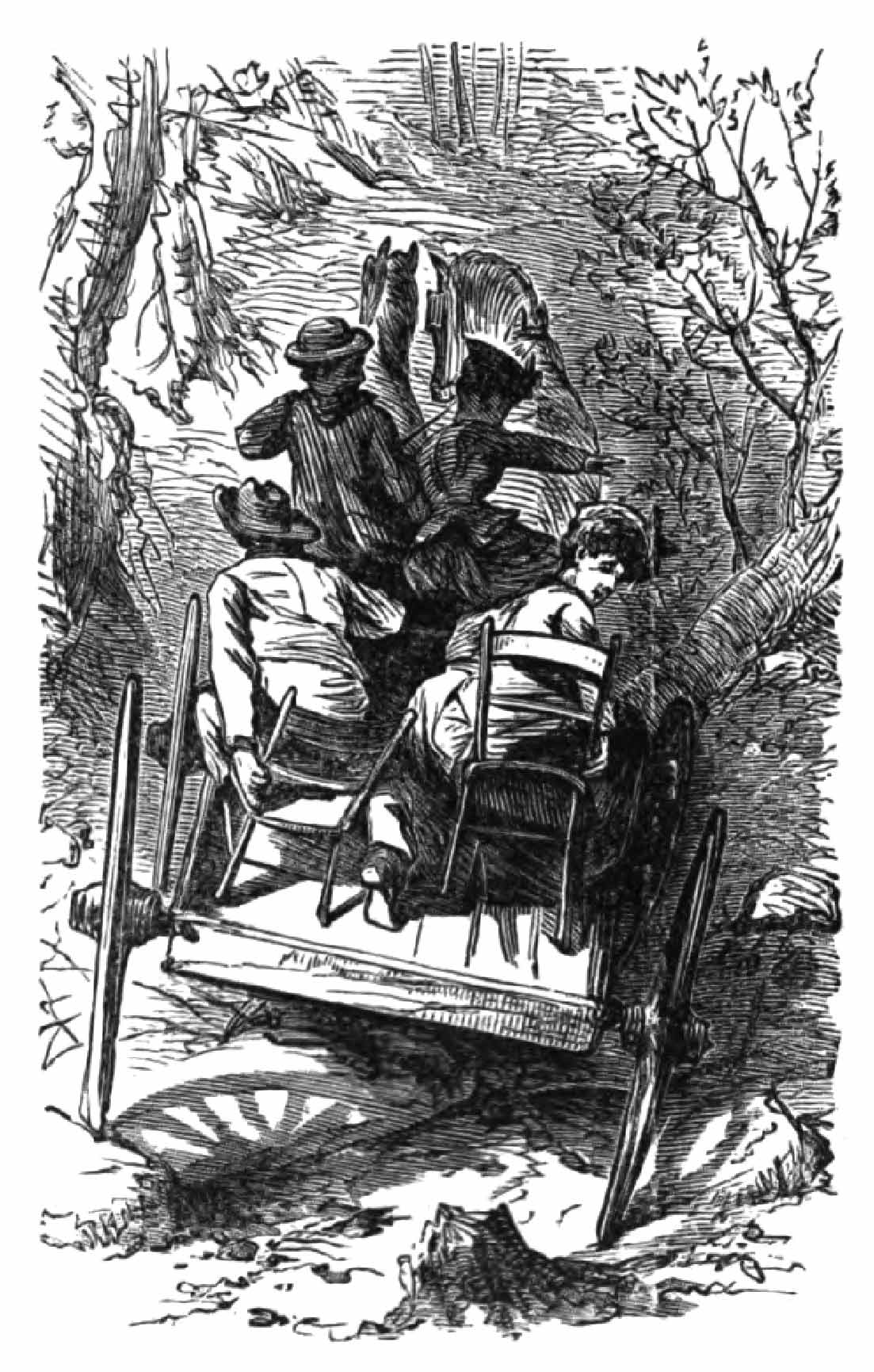 “What is left for me to say?” responds Eric, lighting his cigar. “The matter is apparently settled. I only desire that it may be clearly understood that I am not accountable for consequences. If the carriage is upset, and Bonnibelle breaks her own legs and Sylvia’s neck, nobody is to blame me.”