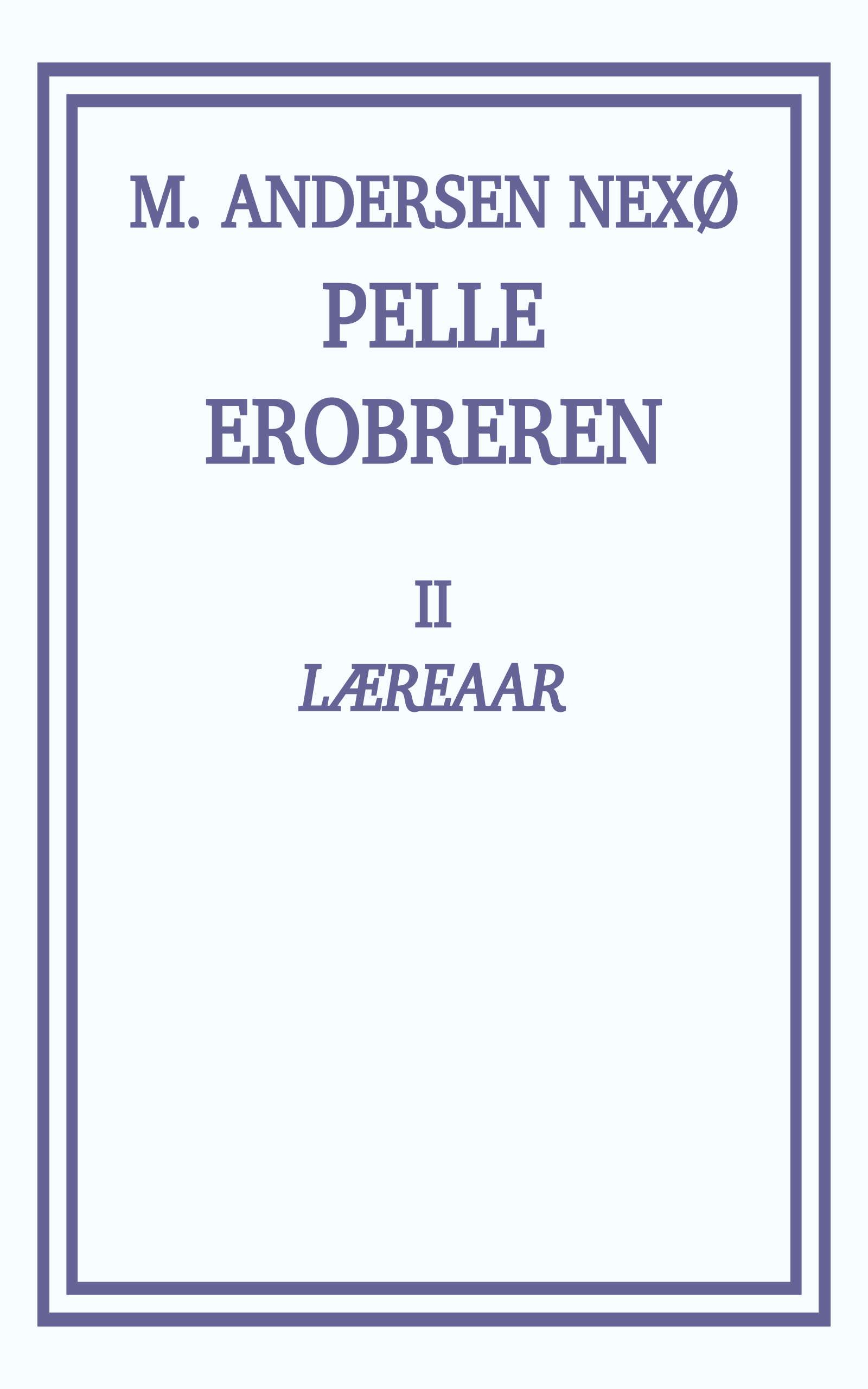 Der gik en Strøm udad ogsaa; hele Formiddagen havde han mødt Svenskere, der var kommet med Damperen om Morgenen og søgte ud paa Landet efter Tjeneste. Der var gamle udslidte Folk og Smaapoge, Piger saa vakre som Lyse Marie, og unge Arbejdere der havde Alverdens Slagkraft liggende i Lænd og Muskler. Det var Livet der strømmede til andet Steds fra for at udfylde Pladsen efter de bortdragende Skarer — men det angik ikke Pelle. Allerede for syv Aar siden oplevede han alt det, der nu fyldte deres Ansigter med Uro; den Ronde de nu begyndte paa, havde han bag sig. Der var intet at se sig tilbage efter.