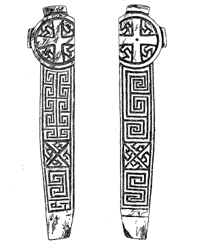 [411] Petrie’s Christian Inscriptions in the Irish Language, vol. ii., p. 123; Trans. R.I.A., vol. xxiv., p. 433; Miss M. Stokes’ Early Christian Art in Ireland, p. 83.