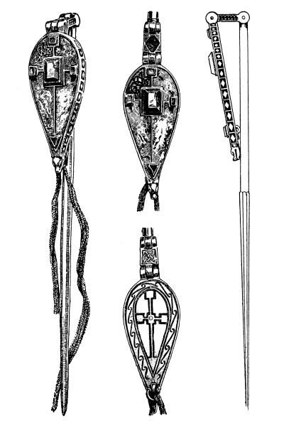 [384] As on the Cross of Cong in the Dublin Museum, and on the pectoral cross of St. Cuthbert in the Library of Durham Cathedral.