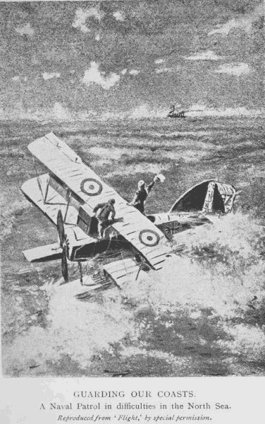 We have seen that the officers and men of the Royal Naval Air Service have also to their credit many long-distance flights. Indeed, in all respects the R.N.A.S. have kept at ‘level-fight’ with the R.F.C. The two Services work, however, under different conditions. The following is an extract from a report from Admiral Sir John R. Jellicoe, G.C.B., G.C.V.O., then Commander-in-Chief, Grand Fleet: ‘Iron Duke, August 23, 1916. Sir,—With reference to my dispatch of June 24, 1916, I have the[242] honour to bring to the notice of the Lords Commissioners of the Admiralty the names of officers who are recommended for honours and special commendation. Where all carried out their duties so well it is somewhat invidious and difficult to select officers for special recognition.’
