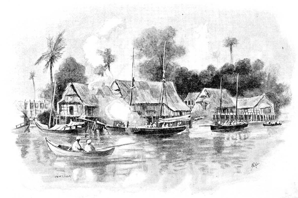 At sunset found steamer off the entrance of the river. Got on board; Dido to follow up to Kuching, where I found Brooke at three o’clock in the middle watch. Hearty welcome.