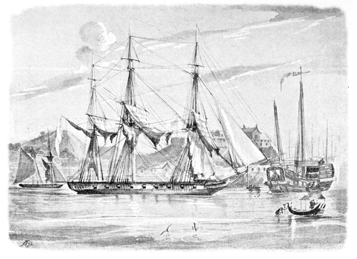Weighed at daylight. Did not lose sight of the blue at the mizzen until noon. Ran into the mud opposite Macao at 9 P.M. Went on shore to Drummond’s.