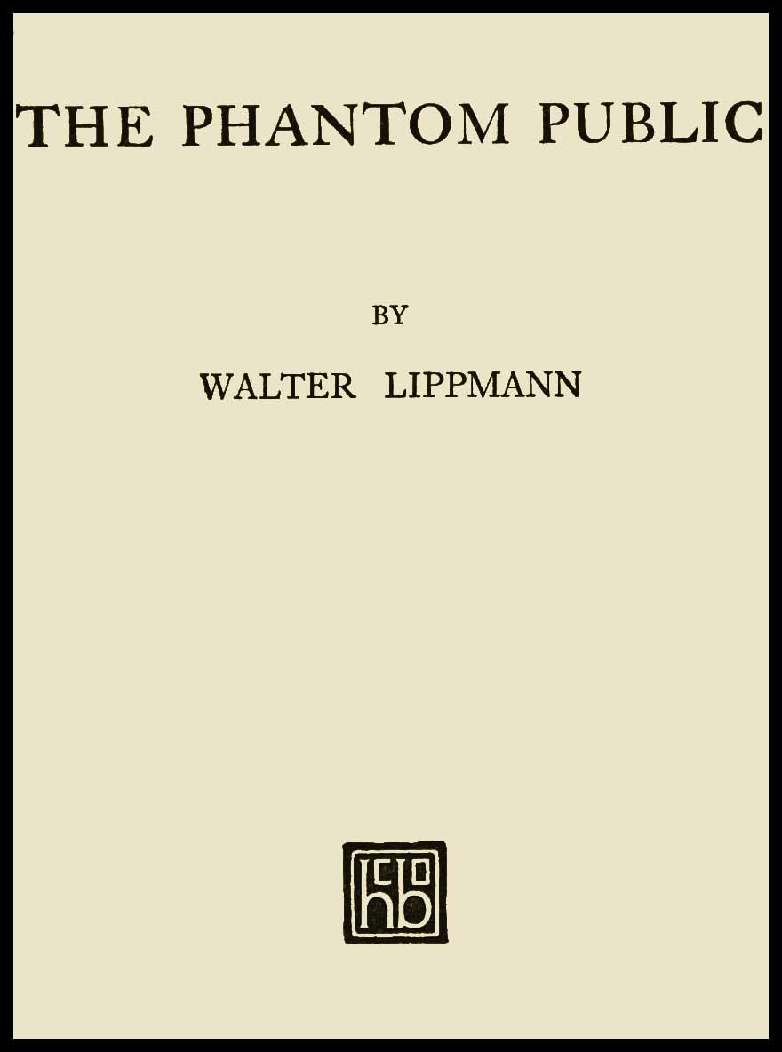 Yet these public affairs are in no convincing way his affairs. They are for the most part invisible. They are managed, if they are managed at all, at distant centers, from behind the scenes, by unnamed powers. As a private person he does not know for certain what is going on, or who is doing it, or where he is being carried. No newspaper reports his [14]environment so that he can grasp it; no school has taught him how to imagine it; his ideals, often, do not fit with it; listening to speeches, uttering opinions and voting do not, he finds, enable him to govern it. He lives in a world which he cannot see, does not understand and is unable to direct.