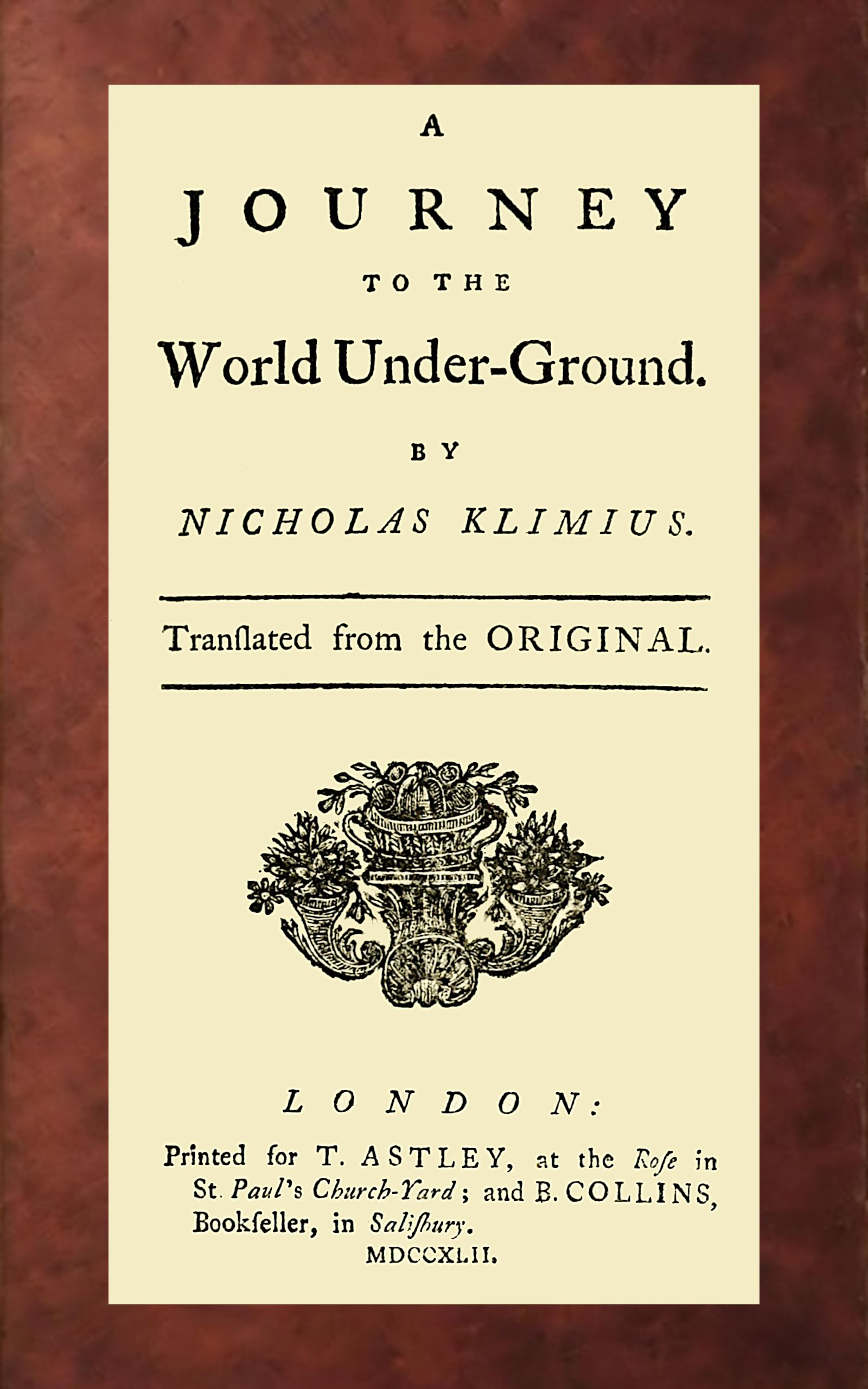 My Mind thus oppress’d with various Anxieties, at length I fell into a profound Sleep, and had slept (as near as I could guess) two Hours, when a horrible Bellowing interrupting my Sleep, at length entirely dispell’d it. A strange Variety of Notions had fill’d my Brain during this Sleep. I 14thought I was returned into Norway, and holding forth among the Students according to Custom; and at one Time I imagin’d I heard the Voice of the Deacon Nicolas Andreas chanting in the Church of Fanöen, just out of the City, and that it was the Noise of his Voice, which according to Custom had so cruelly wounded my Ears. And agreeably to this, when I awoke, I really thought it was his horrid Voice that had disturb’d me. But when I saw a Bull standing near me, then, indeed, I concluded my Rest had been broke by his Bellowing. Presently throwing my Eyes around me, the Sun now rising, I beheld every where green, fertile Plains and Fields; some Trees also appeared, but (what was most amazing) they moved; tho’ such was the Silence and Stillness of the Air at that Time, that it would not have moved the lightest Feather from its Place. Immediately the Bull came roaring at me, and I in my Terror and Consternation seeing a Tree just by me, attempted to climb it; but when I got up into it, it uttered a fine small Voice, tho’ something shrill, and not unlike an angry Lady’s; and presently I receiv’d, as it were from the swiftest Hand, such a Blow as quite stunn’d me, and laid me prostrate on the Ground. I was almost expiring with this Thunderbolt of a Stroke, when I heard certain confus’d Murmurings round me, like those in great Markets, or upon full Change. Having opened my Eyes, I beheld 15all about me a whole Grove of Trees, all in Motion, all animated, and the Plain overspread with Trees and Shrubs, tho’ just before there were not above six or seven. ’Tis not to be express’d what Disorders this produced in my Understanding, and how much my Mind was shock’d with these Delusions: Sometimes I thought I must certainly dream; sometimes I thought I was haunted by Spectres and evil Spirits, and twenty absurder Things did I imagine; but I had no Time to examine these Machines, or to inquire into their Causes; for presently another Tree advancing to me, let down one of its Branches, which had at the Extremity of it six large Buds in the Manner of Fingers. With these the Tree took me up from the Ground, and carried me off, attended by a Multitude of other Trees of various Kinds and different Sizes, all which kept muttering certain Sounds, articulately indeed, but in a Tone too foreign for my Ears, so that I could not possibly retain any Thing of them, except these two Words, Pikel Emi, which I heard them very often repeat. By these Words (as I afterward understood) was meant, A Monkey of an odd Shape; because from the Make of my Body, and Manner of Dress, they conjectur’d I was a Monkey, tho’ of a Species different from the Monkeys of that Country. Others took me for an Inhabitant of the Firmament, and that some great Bird had transported me hither; a Thing that had once 16before happened, as the History or Annals of that Globe can testify. But all these Things I understood not till after the Space of some Months, in which Time I became acquainted with the subterranean Language. For in my present Circumstances, what thro’ Fear, and what through the Disorder of my Intellects, I was quite regardless of myself, nor could conceive how there could be any such Thing as living and speaking Trees, nor to what Purpose was this Procession, which was very slow and solemn. But yet the Voices and Murmurs with which all the Plains echoed seemed to indicate Anger and Indignation; and in good Truth it was not without ample Reason that they had conceived this Resentment against me; for that very Tree, which I climb’d up in my Flight from the Bull, was the Wife of the Prætor, or principal Magistrate of the next City; and so the Quality of the Person injur’d aggravated the Crime; for it look’d as if I had a Mind to violate not a Female of mean and plebeian Birth, but a Matron of prime Rank, which was a most detested Spectacle to a People of so venerable a Modesty as these were. At length we arrived at the City to which I was led Captive. This City was equally remarkable for its stately Edifices, and for the elegant Order and Proportion of the Streets and Highways; so lofty were the Houses, that they resembled so many Towers; the Streets too were full of walking Trees, which by letting 17down their Branches saluted each other as they met, and the greater Number of Branches or Boughs they dropt, the greater was the Compliment. Thus when an Oak went out of one of the most eminent Houses, the rest of the Trees drew back at his Approach, and let down every one of their Branches; from whence it was easy to infer, that that Oak was far above the vulgar Sort; and, indeed, I soon understood that it was the Prætor himself, and the very Person whose Wife I was said to have so highly affronted. Forthwith they hurried me to the Prætor’s House; upon my Entrance into which, the Doors were immediately lock’d and bolted upon me, so that I look’d upon myself as one condemn’d to a Gaol. What greatly contributed to this Fear was, that there were three Guards plac’d without, like Centinels, each of them arm’d with six Axes, according to the Number of their Branches; for as many Branches as they had, so many Arms they had; and as many Buds at the Extremities, so many Fingers. I observed, that on the Top of the Trunks or Bodies of the Trees their Heads were plac’d, not at all unlike human Heads; and instead of Roots, I saw two Feet, and those very short, by Reason of which the Pace they us’d was almost as slow as that of a Tortoise; so that had I been at Liberty, it had been very easy for me to have escap’d their Hands, since my 18Motion was perfect Flying compar’d to theirs.