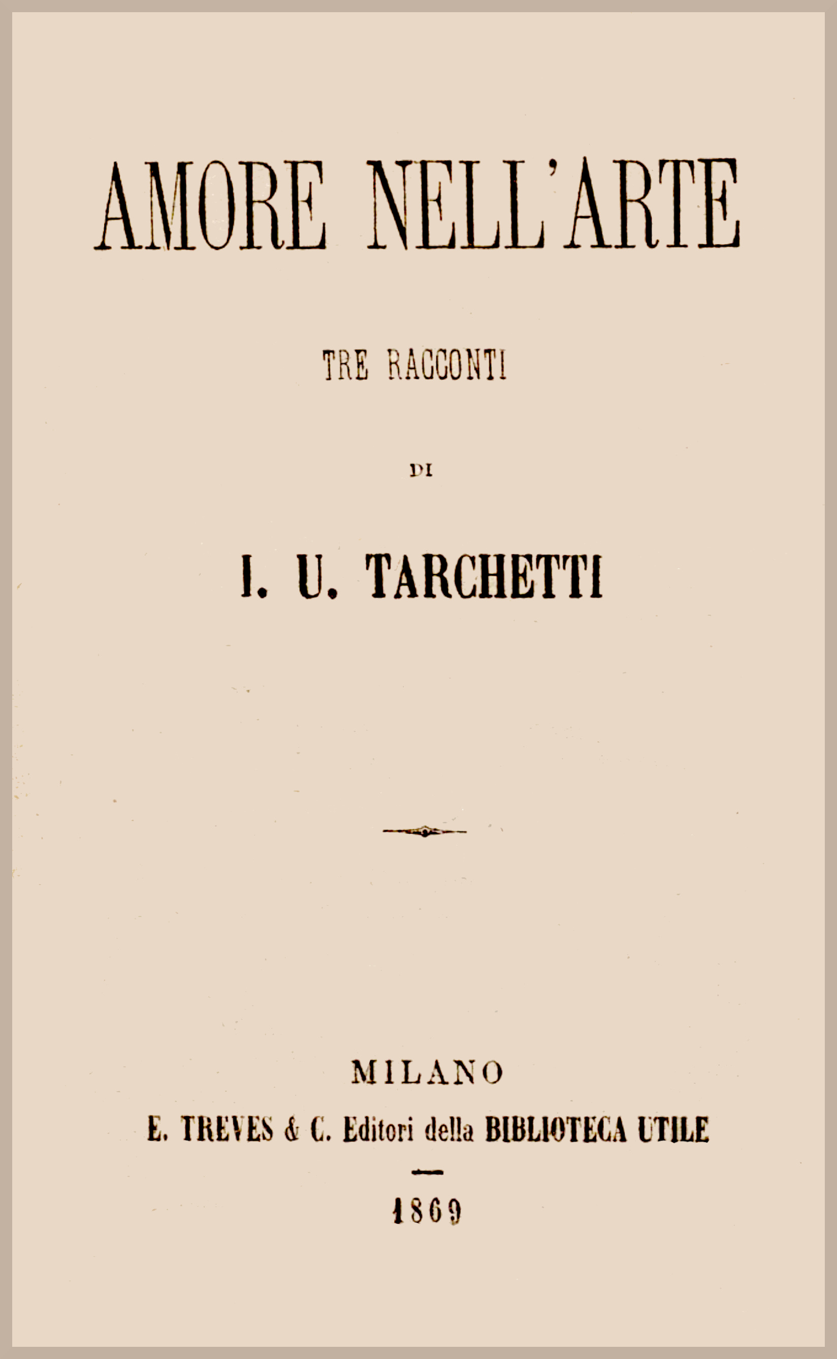 Mio caro amico, riprese Lorenzo dopo un breve intervallo di silenzio, io mi sono disgustato assai presto delle donne; le prime prove mi hanno atterrito; non ti dirò ciò [40] che ebbi ad esperimentare di poi; aggiunsi sconforto a sconforto — mi ritrassi nella mia solitudine disperando di non poter amare che la mia arte. E forse un artista non può, non deve avere un altro amore che questo — l’amore astratto del bello, del buono, l’amore che conduce direttamente a Dio, che rinuncia alla creatura, che non si posa su cosa alcuna del mondo — tutto il resto è sogno, è illusione, è voluttà d’un istante. Se l’amore debb’essere infinito e gli uomini tutti amano cose finite, gli artisti sono i soli uomini che amano.