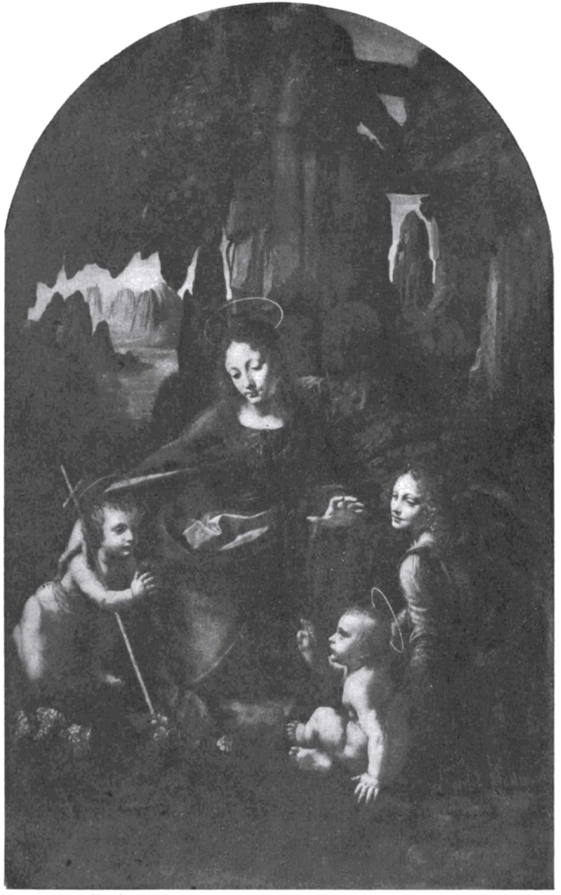 These words were written four hundred years ago; they might have been written to-day. One feels how very modern he was in spirit. It is, of course, a question what he means by “nature”—whether that ideal which Sir Joshua Reynolds called the general idea of nature, or nature in its variety and imperfection as we see it. I think Leonardo meant the latter, in the sense that the persons in a picture should look what they profess to be—not, of course, in the sense that he would take the first woman he met as model for a Madonna. There, where he had to represent the highest type of woman, he chose the most beautiful[31] person he could, as we see in “The Virgin of the Rocks” in the National Gallery.