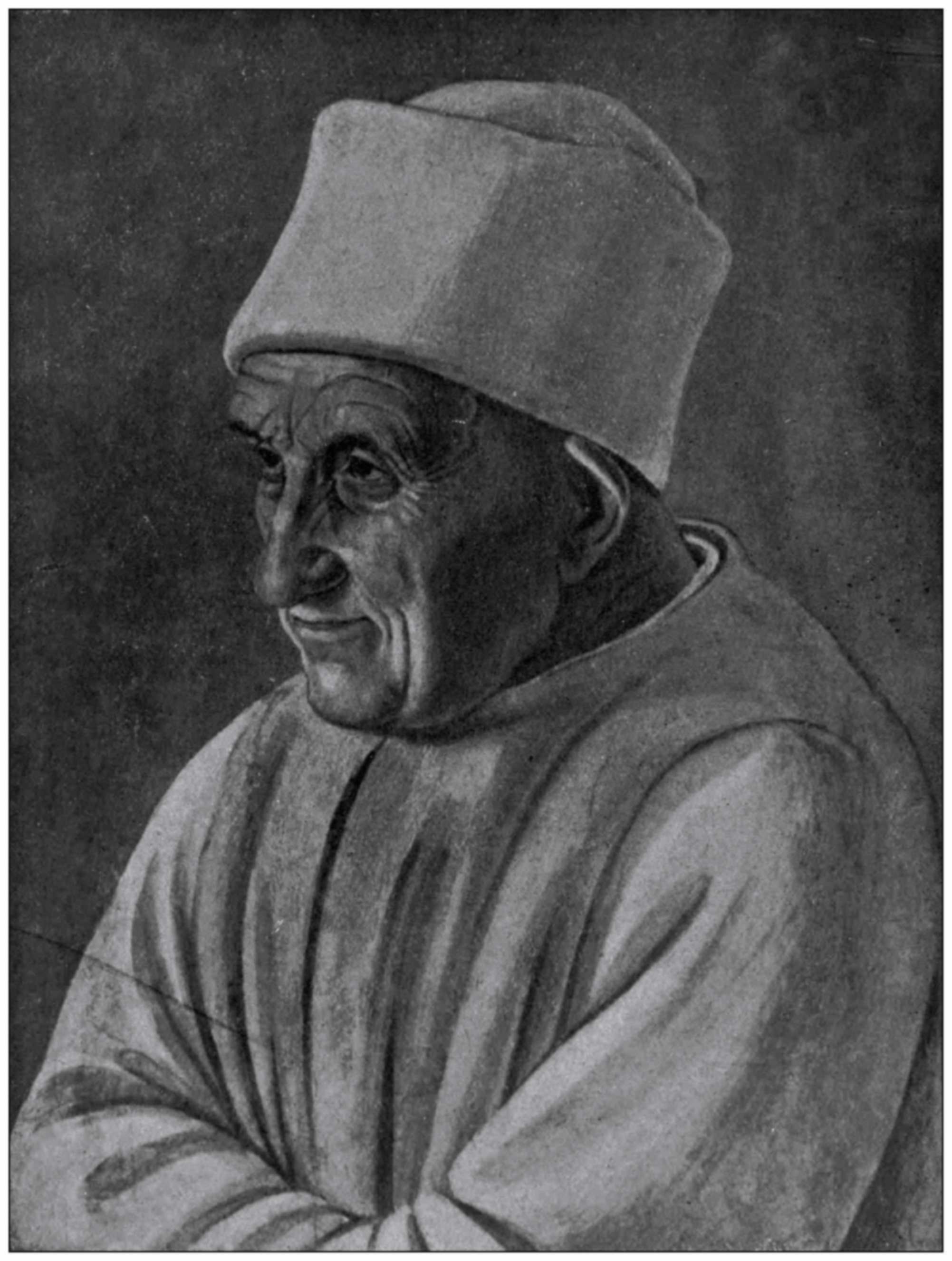 The realism of expression or character is to be found in the work of the past rather than in that of to-day. We find it in the work of Titian, of Tintoret, of Rembrandt, as in the “Jew Merchant” in the National Gallery, and of Sir Joshua Reynolds. It is not an imitation of nature, but an abstraction of an imaginative artist, and is found, as a rule, in his later works. We find examples of the middle course between these extremes in the work of Velasquez, of Moroni—such as the “Tailor” and the “Lawyer”—and of Lorenzo Lotto, in his fine portrait of an ecclesiastic[123] in the National Gallery, and in the work of Veronese and Franz Hals. This is the direction, I think, in which realism in portraiture should go.