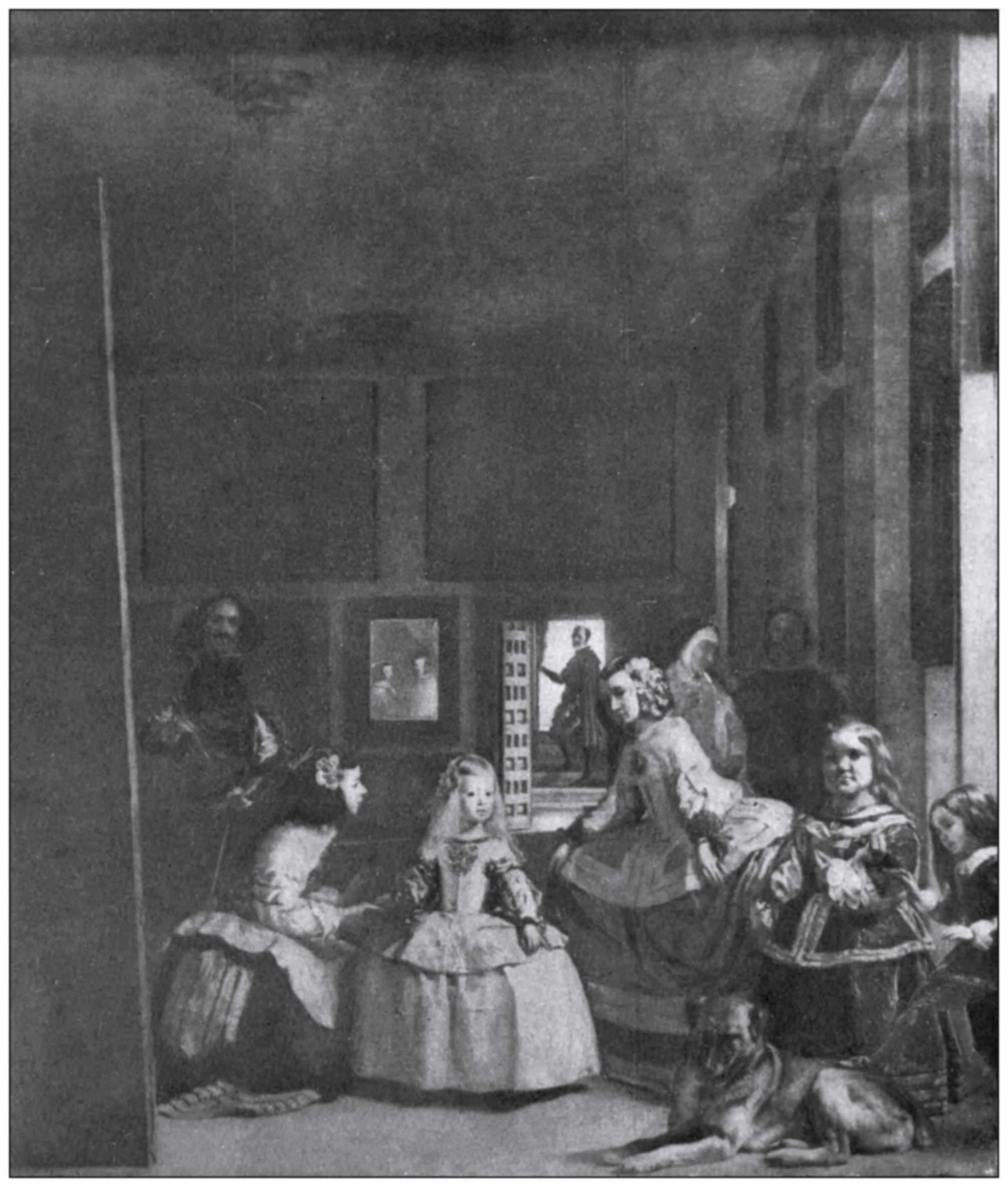 The later work of Velasquez is the finest of all. One cannot imagine direct painting finer than the head of Philip IV. in the National Gallery, and it has every appearance of being done with ease and certainty. There is no display, no trace of effort, no “execution.” And in what must be his finest work, “Las Meniñas,” of which I have only seen a study, a problem of the utmost complexity in gradation is solved with apparently the greatest ease. The arrangement is so easy and natural that one does not realise its consummate art. How beautifully the figures are proportioned to the room, and how finely the large dark empty space above contrasts with the light and sparkle of the figures! His paint charms by its clear silvery colour and by what looks like unconscious certainty in his handling, and this must have come to him naturally, unsought. But the great interest of his work lies in the fact that it is so “modern,” that he paints things as we see them; and this has been well pointed out by the late R. A. M. Stevenson in his[81] excellent appreciation of Velasquez, which I should advise you to read.