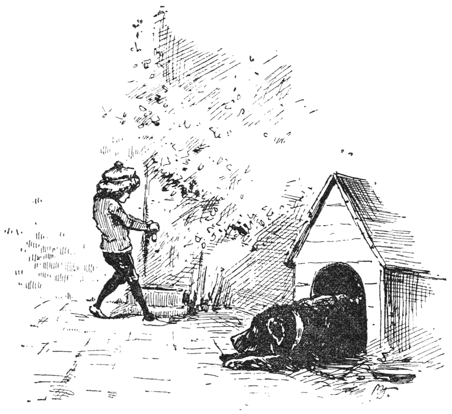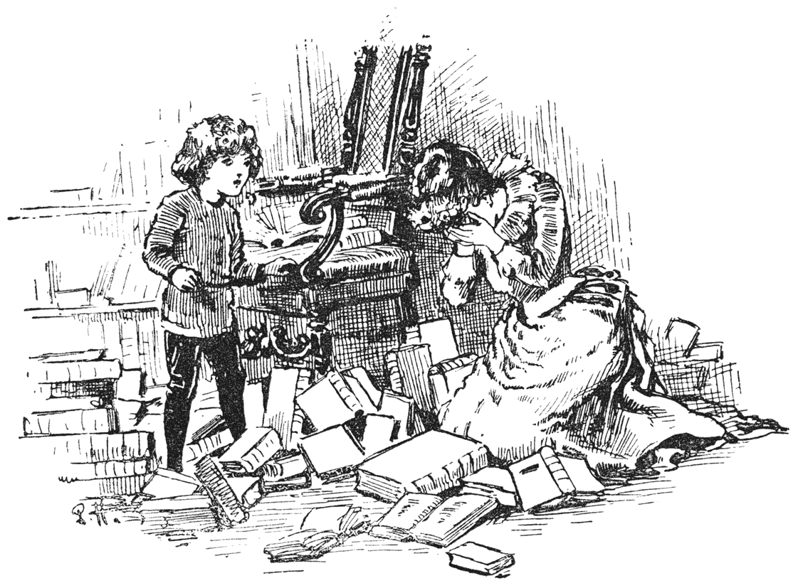 Alles bij elkaar was ’t bepaald de moeite waard nu eens te probeeren iets heel, heel prijzenwaardigs te doen. Als hij zich had neergezet met zijn verfdoos om prenten te kleuren, of hij was kalm wat in een verhaaltjes-boek gaan zitten lezen, dan zou zijn zuster hem een bijzonder zoete jongen hebben gevonden, aangenomen ten minste dat hij niet een boek van iemand anders had genomen om te kleuren, of een boek van iemand anders om vlekjes van vuile vingers in te maken. Maar deze manier van goed oppassen was niet voldoende om de verlangens van kleine Jo op dat oogenblik te bevredigen. Eindelijk viel hem een denkbeeld in. Een prachtig denkbeeld, vond hij.