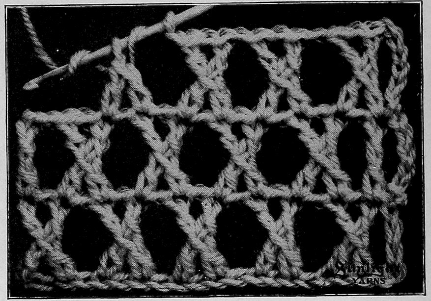 2nd row: Same as 1st row; make the stitches above each other and take up in the double stitch on the row below.