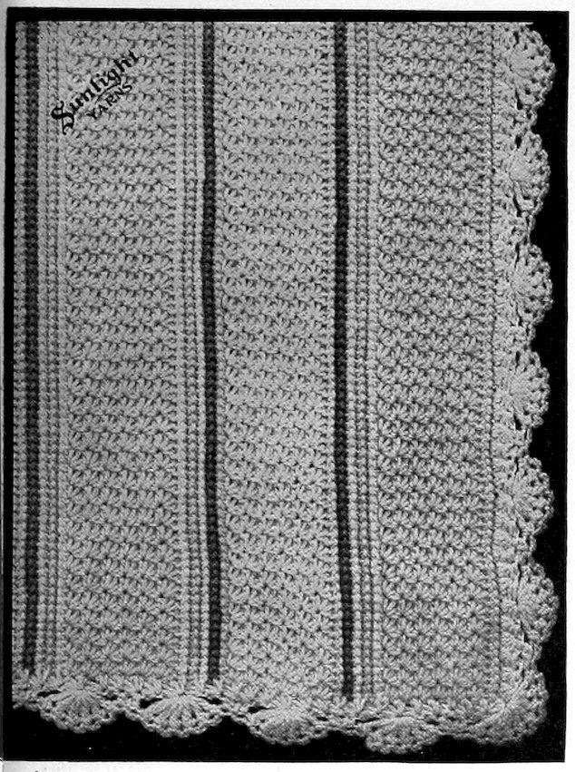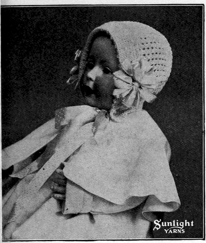 SUNLIGHT Lusterine is a very soft yarn with a lustrous strand running spirally about it. It is largely used for making up dainty infants’ garments, scarfs, shawls, etc.