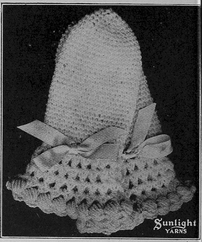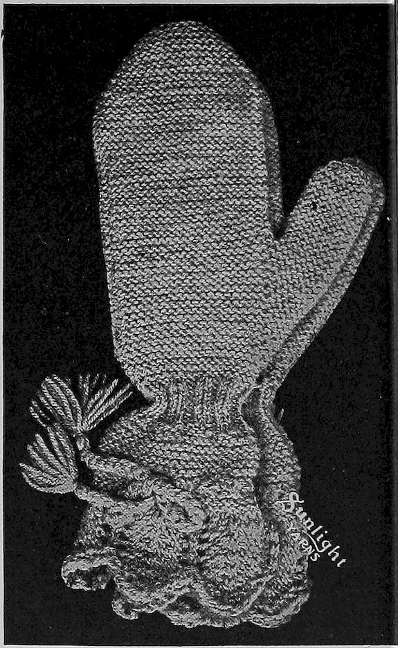 SUNLIGHT Angora works up very beautifully into infants’ soft hoods, Tam o’Shanters, infants’ muffs and women’s mitts, caps and toques. It gives a soft, fluffy surface.