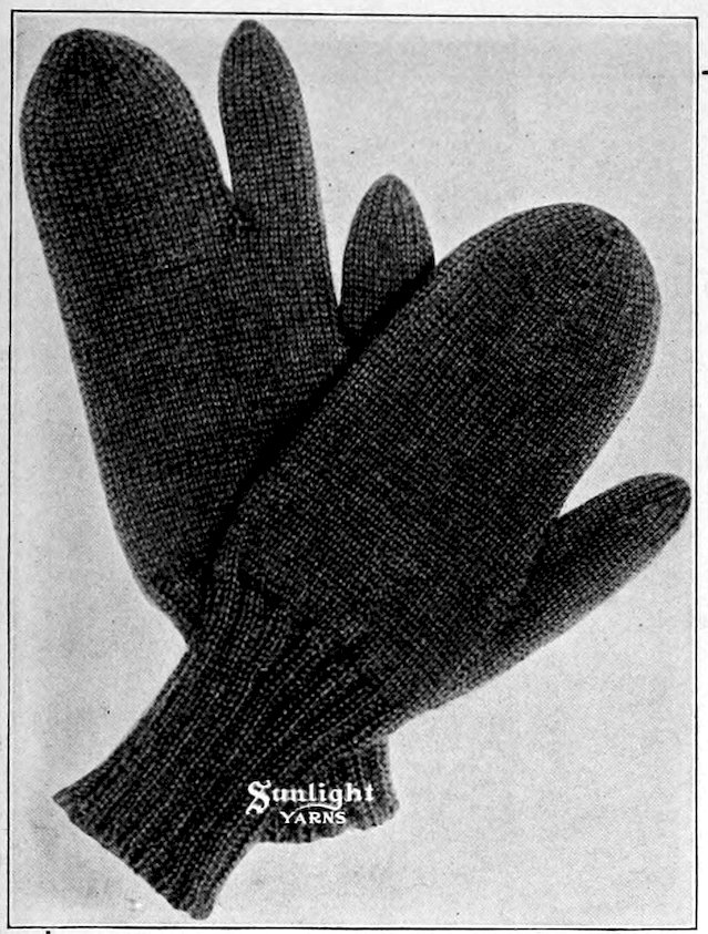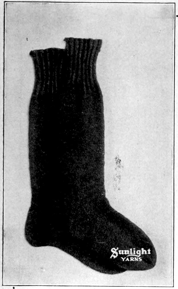 SUNLIGHT Spanish Worsted—four-ply—is made of a special selection of fine, hard wearing wools. It is spun into a finer thread than the German Knitting Worsted, is used for much the same purposes, but is particularly adapted for knitting gloves and mittens, men’s socks, women’s stockings, sweaters, etc. Sunlight Spanish Worsted is made in a complete line of colors and mixtures.