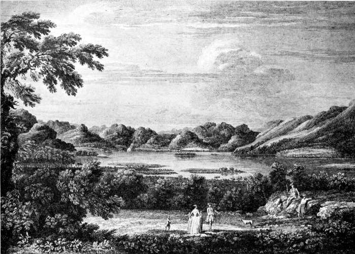 [590] Aside from the works of the Van de Veldes English public galleries have very few examples of landscape painting in England during the years 1660–1707. From Walpole’s “Anecdotes of Painting” and from standard dictionaries of art and biography a partial list of the foreigners painting in England at this time may be compiled. Chief among them were Hendrik Danckerts who, after painting landscapes in Italy, came to England about 1667 and was engaged by Charles II to paint views; Cornélius Bol who, during the same reign, was painting views of the Thames; John Looten (d. 1680), whose chosen subjects were “glades, dark oaken groves, land-storms, and waterfalls;” Henry Lankrink (1628–92), a successful imitator of Salvator Rosa in the depiction of rough country, was especially commended for “the beauty and freedom” of his skies, and employed by Lely to paint some of his backgrounds; John Sybrecht (1630–1703), a painter of pictures of the Rhine, who was in England after 1680, and whose “Prospect of Longleat” was one of the pictures at Newstead Abbey, Lord Byron’s home; Philip Boul who left a pocketbook of sketches of Derbyshire and the Peak, “worked out in the Salvator Rosa style;” Henry Verzagen who devoted himself to “ruins and landscapes;” Adrien Vandiest (1655–1704), who came to England in 1672 and seven of whose landscapes were in Sir Peter Lely’s collection; Jan Van Wyck (d. 1702) who painted “excellent landscapes” from scenes in Scotland and the isle of Jersey; and Jan Griffier (1645–1718) who painted mixed scenes of river and rich country in the manner of Ruysdael, and who was so much of an enthusiast that he bought a yacht and, “embarking with his family and pencils passed his whole time on the Thames.”