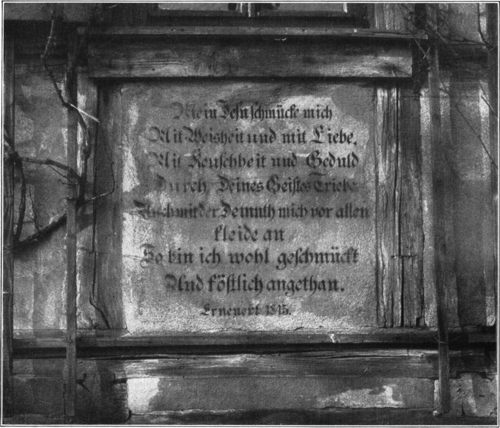 In Pillnitz hat der Herrenwille der Rittergutsbesitzer dieses ursprüngliche Ortsbild fast ganz verwischt. Nur östlich vom Schloß stehen noch einige der malerischen Holzhäuser, nicht mehr in den altwendischen Bauformen, aber sicher noch an der Stelle alter »Kitzen«. Wenn an schönen Sommertagen der Schwarm plaudernder Großstädter vom Dampfschifflandeplatz nach der Schloßrestauration hier vorüberflutet, dann gönnt wohl mancher ihren altfränkischen Vorbauten einen flüchtigen Blick, und sinnige Menschen lesen wohl auch am Hause Nummer 47 den frommen Spruch: