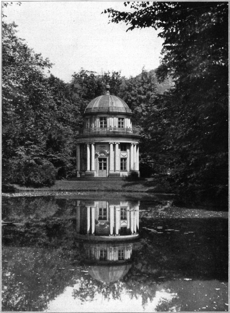 Nun entfaltete hier August der Starke seine hochfliegenden Pläne als Baumeister. Auch in Pillnitz wirkten in seinem Sinne seine Meisterarchitekten Pöppelmann und Longuelune und deren erprobte Gehilfen. Die Bauleitung wurde dem in solcher Tätigkeit wohl bewährten General Grafen Wackerbarth übertragen. Eine Darstellung der Baugeschichte in allen ihren Einzelheiten kann nicht unsere Aufgabe sein. Wir verweisen auf die mit Plänen und Ansichten reich ausgestatteten Arbeiten von A. v. Minckwitz und Cornelius Gurlitt. Die Bautätigkeit begann mit dem Abbruch der Schloßkirche. Das neue Gotteshaus wurde 1723 bis 1725 an der Weinbergslehne errichtet; zu seiner Ausstattung dienten Einrichtungsgegenstände des älteren Gebäudes. Noch heute sind in der »Weinbergskirche« die schönen Grabdenkmäler einiger Mitglieder der Familien Losz und Bünau zu sehen. 1925 beging die Gemeinde Pillnitz das zweihundertjährige Jubiläum ihres Gotteshauses, das am 11. November 1725 eingeweiht worden war. 1720 bis 1721 entstand auch das sogenannte Wasserpalais, das damals als orientalisches oder indianisches Lustgebäude bezeichnet wurde. Es ist jenes noch heute von allen Dampfschiffreisenden [16]angestaunte Bauwerk in einem pseudo-ostasiatischen Stil mit der großartigen Hafentreppe. An ihr schaukelten sich einstmals, freilich erst seit 1744 nachweisbar, die künstlerisch ausgestatteten Gondeln mit ihren bunt gekleideten Führern; mit dem Weggange der fürstlichen Herrschaften von Pillnitz sind sie wohl für immer verschwunden. Dagegen grüßt uns an der Elbseite noch einer der wenigen Überreste aus dem älteren Schlosse, nämlich jener Sandsteinobelisk aus der Zeit um 1650, der mit einem verlorengegangenen zweiten Obelisken einst vor der Ostfront des Loszschen Bauwerks stand und nach dem Brande von 1818 auf den »Löwenkopf«, den Unterbau eines früheren Lusthauses an der Elbe, gebracht wurde, der seinen Namen von einem an der Stromseite in das Mauerwerk eingelassenen Löwenhaupte, auch aus der Mitte des 17. Jahrhunderts, bekommen hat. 1722 und 1723 wurde auf der nördlichen Seite des Lustgartens, symmetrisch zum Wasserpalais und ebenfalls im chinesischen Stil, das Bergpalais errichtet.