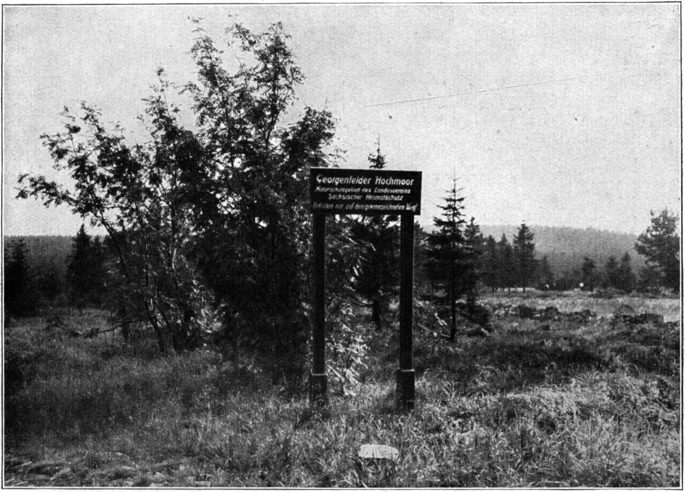 Ein volkswirtschaftlicher Gewinn ist weiterhin die erwähnte Umwandlung der ausgedehnten norddeutschen Moorflächen in wertvolle Kulturböden, wie sie durch die Moorkulturstationen geübt wird. Gewarnt aber muß werden vor dem rücksichtslosen Abbau der Kammoore unserer Mittelgebirge, also auch unseres sächsischen Erzgebirges. Sie sind meist Plateau- und Hangmoore und leisten für uns das, was für die Schweiz die Gletscher schaffen: Sie regulieren in rationeller Weise die reichen Niederschläge der Gebirgshöhen. Manche Wasserkatastrophe wäre vermieden, manche kostspielige naturmordende Talsperre wäre erspart worden, hätte man die Moorflächen, welche etwa vier Prozent der Gesamtfläche von Sachsen einnehmen, nicht durch Abbau, Aufforstung und Trockenlegung verringert. Welche gewaltigen Wassermengen von unseren Moosmooren aufgesaugt [57]werden können, erhellt eine Mitteilung des Professors Delitzsch, Leipzig, über den Kranichsee. Nach ihm enthält der Kranichsee nahe Karlsfeld bei vollständiger Sättigung soviel Wasser, daß er ein ganzes Jahr lang in jeder Sekunde fünfhundert Liter Wasser liefern könnte. In dem »Kranichsee« ist wohl das ausgedehnteste sächsische Kammoor des Erzgebirges geschützt, und wir dürfen dies als eine Großtat unserer Heimatschutzbestrebungen buchen.
