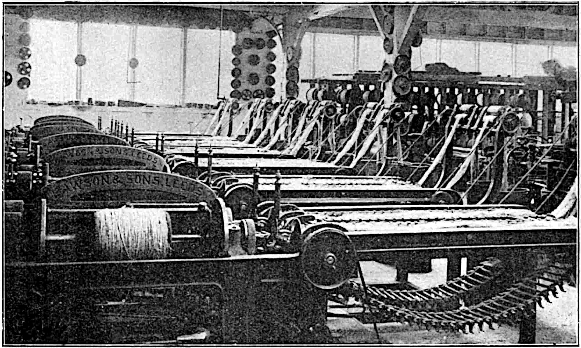 Although the various house machines represent the latest developments in the art of stranding and closing—the 102two essential operations of rope making—a modern rope and cordage works is provided not only with the various machines which have been illustrated and described, but also with a well-equipped rope-walk so that the products may include a great variety of cordage from the finest lines to the mammoth ropes for ships, steamers, harbours and heavy hauling purposes generally.