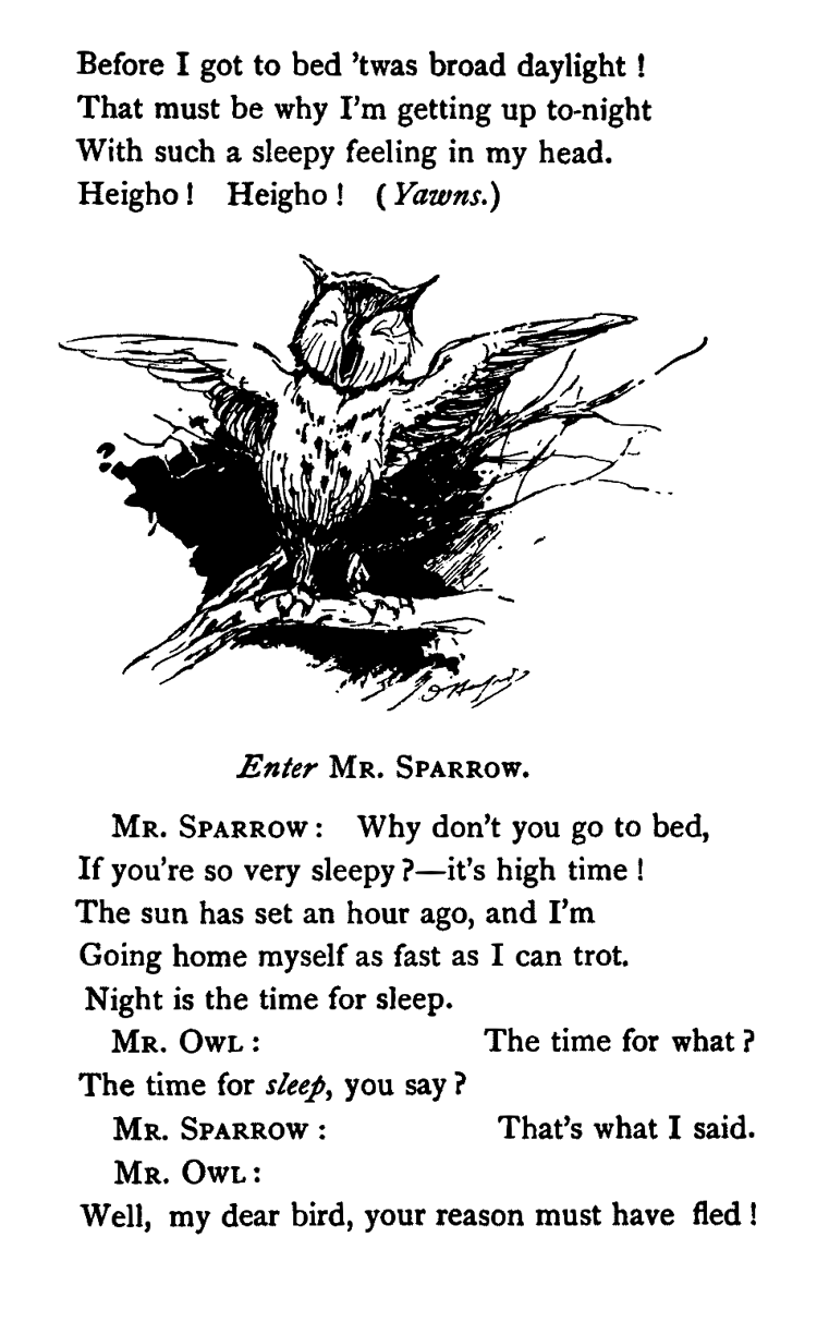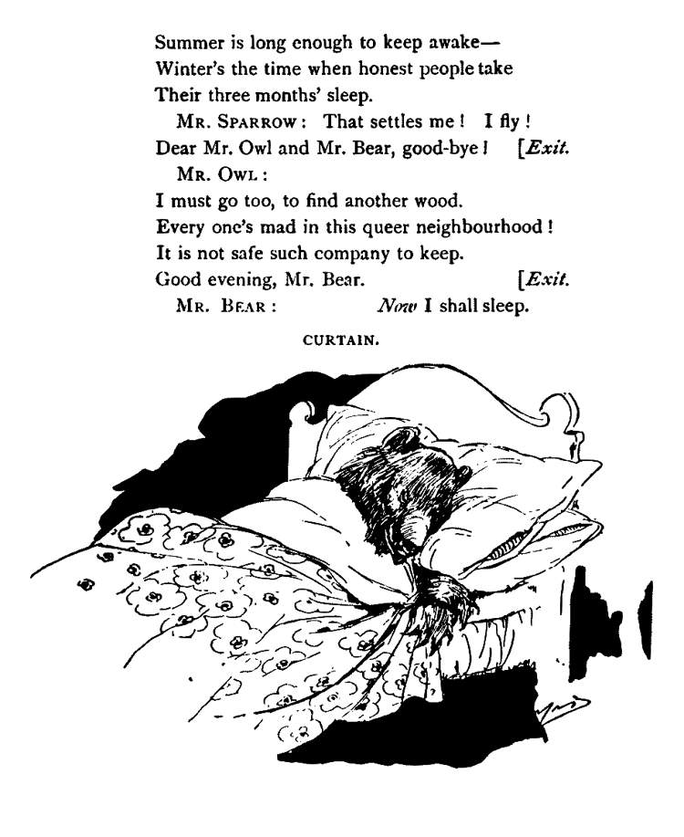 Dear Mr. Owl and Mr. Bear, good-bye! [Exit.