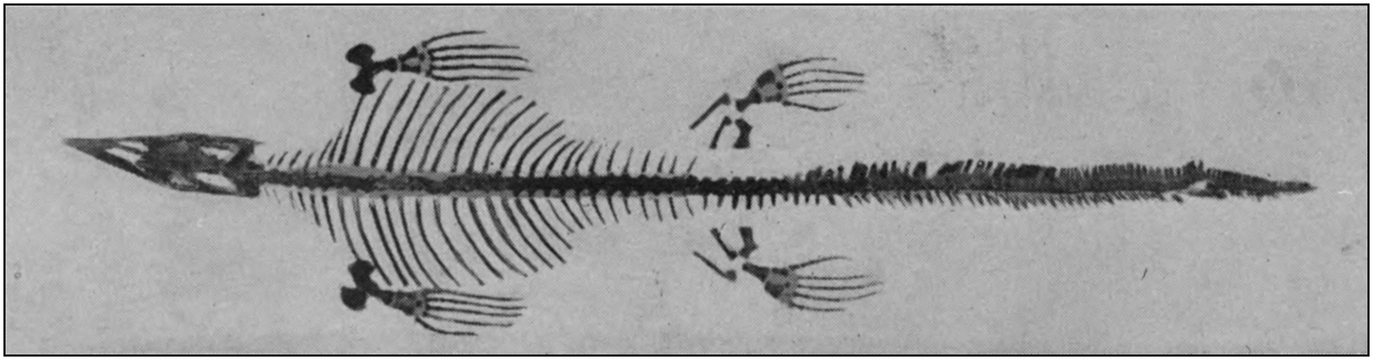 How can I thank the Director of the Geological Survey of Canada, and Deputy Minister, Mr. R. G. McConnell, who has allowed me to use the photographs taken by my sons George and Charlie, to illustrate my pages. The text would have been dull indeed without them. Neither can I express my thanks for his unfailing kindness to me while I was under his authority as a member of the Survey. All the photographs (except the Front Piece Figures 1, 2, and 3, which[viii] were sent to me by my old friend, Dr. Osborn, President of the American Museum of Natural History, New York. The picture of a Portheus, from the London Illustrated News, the Figure of a Tylosaur by my son George F. Sternberg. The restoration of Diplodocus carnegii by Mr. C. W. Gilmore of the U. S. National Museum, and the figures 43, 44, and 45 taken last year by my son Levi) belong to the Survey. Mr. Clark in charge of the Division of Photography developed the photographs, and the Terre Haute Engraving Co. made the halftones. Neither can I forget the unvarying kindness of the former Deputy Minister, Dr. R. W. Brock who first employed me. For the great assistance he rendered me in field and shop. For his earnest assistance to help me build up a great collection of the Extinct Animals of Canada, at the Victoria Memorial Museum at Ottawa, Ontario. I hope these gentlemen and all others who have helped me to that end, will feel themselves included in this letter of thanks.