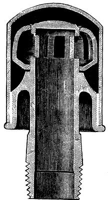Over each one of these sprinklers is placed a brass cap, which fits closely over and passes below the base, where it is soldered on with a fusible metal that melts as soon as it is heated to 155 degrees.