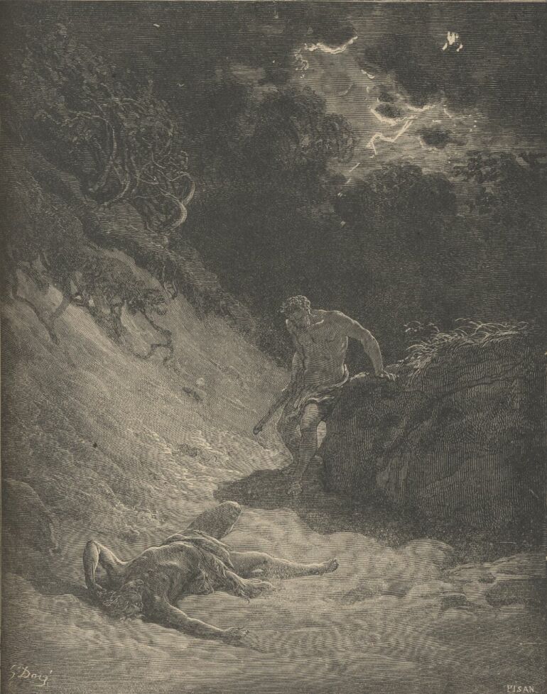 And Adam knew Eve his wife; and she conceived, and bare Cain, and said, I have gotten a man from the Lord. And she again bare his brother Abel. And Abel was a keeper of sheep, but Cain was a tiller of the ground. And in process of time it came to pass, that Cain brought of the fruit of the ground an offering unto the Lord. And Abel, he also brought of the firstlings of his flock and of the fat thereof. And the Lord had respect unto Abel and to his offering: But unto Cain and to his offering he had not respect. And Cain was very wroth, and his countenance fell. And the Lord said unto Cain, Why art thou wroth? and why is thy countenance fallen? If thou doest well, shalt thou not be accepted? and if thou doest not well, sin lieth at the door, and unto thee shall be his desire, and thou shalt rule over him. And Cain talked with Abel his brother: and it came to pass,—when they were in the field, that Cain rose up against Abel his brother, and slew him.