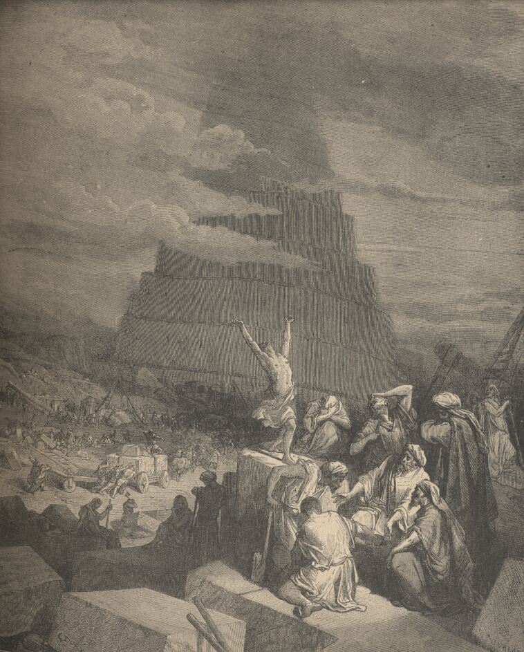 Therefore is the name of it called Babel; because the Lord did there confound the language of all the earth: and from thence did the Lord scatter them abroad upon the face of all the earth.—Genesis xi, 1-9.