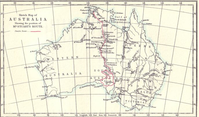 SKETCH MAP OF AUSTRALIA, SHOWING THE POSITION OF MR. STUART'S ROUTE.