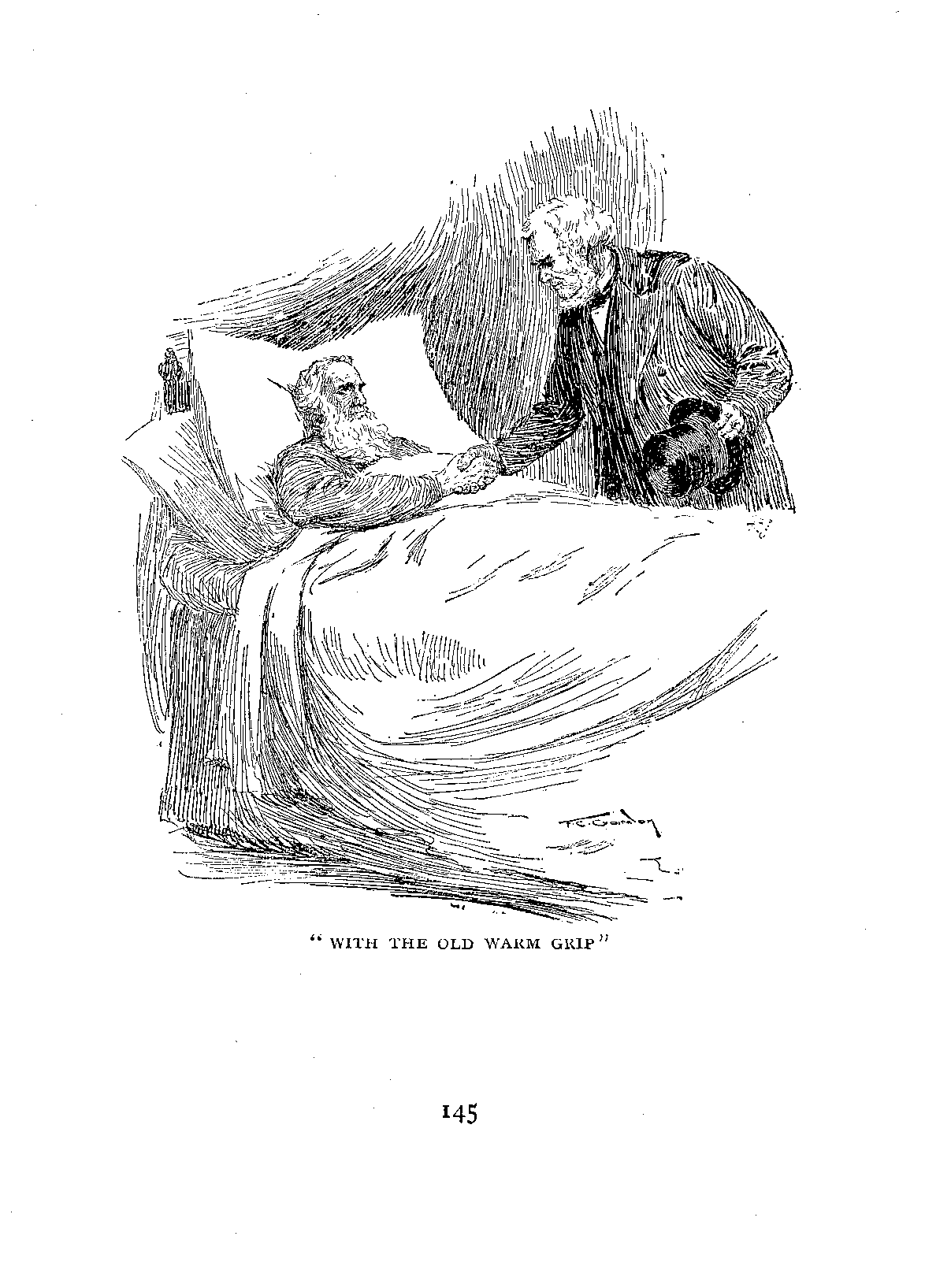 The doctor had weakened sadly, and could hardly lift his head, but his face lit up at the sight of his visitor, and the big hand, which was now quite refined in its whiteness, came out from the bed-clothes with the old warm grip.