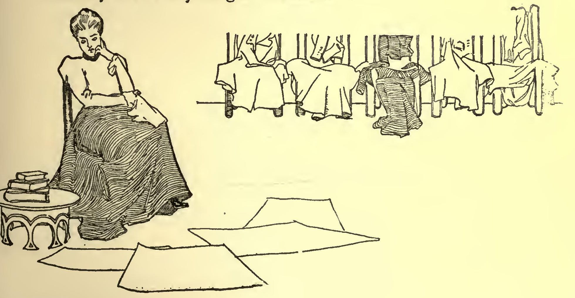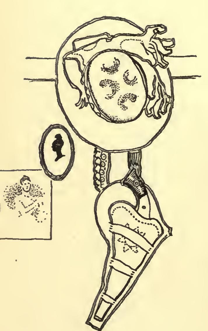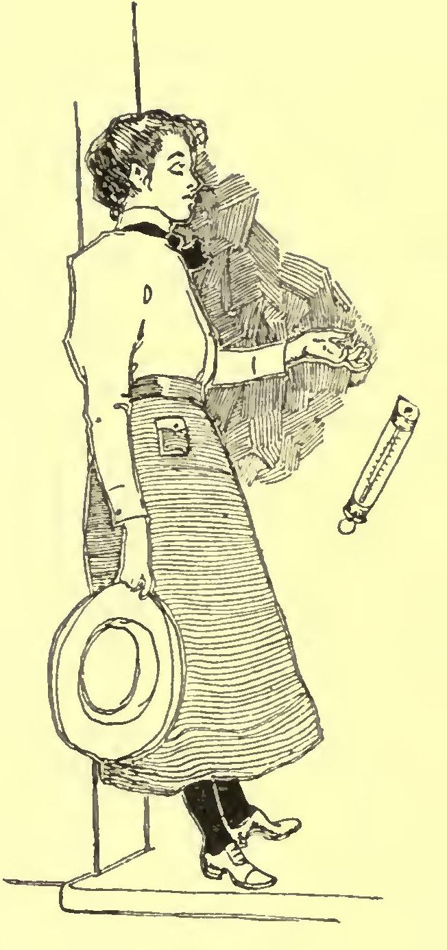 At this point, if any man, a reviewer perhaps, has delved thus far into the mysteries of feminine outfit, he will probably remark, "Why take a hat pin of much value?" to which I reply; "Why not? Can you suggest any more harmless or useful vent for woman's desire to ornament herself? And unless you want her to be that horror of horrors, a strong-minded woman, do you think you can strip her for three months of all her gewgaws and still have her filled with the proper desire to be pleasing in your eyes? No; better let her have the hat pins—and you know they really are useful—and then she will dress up to those hat pins, if it is only with a fresh neck ribbon and a daisy at her belt."