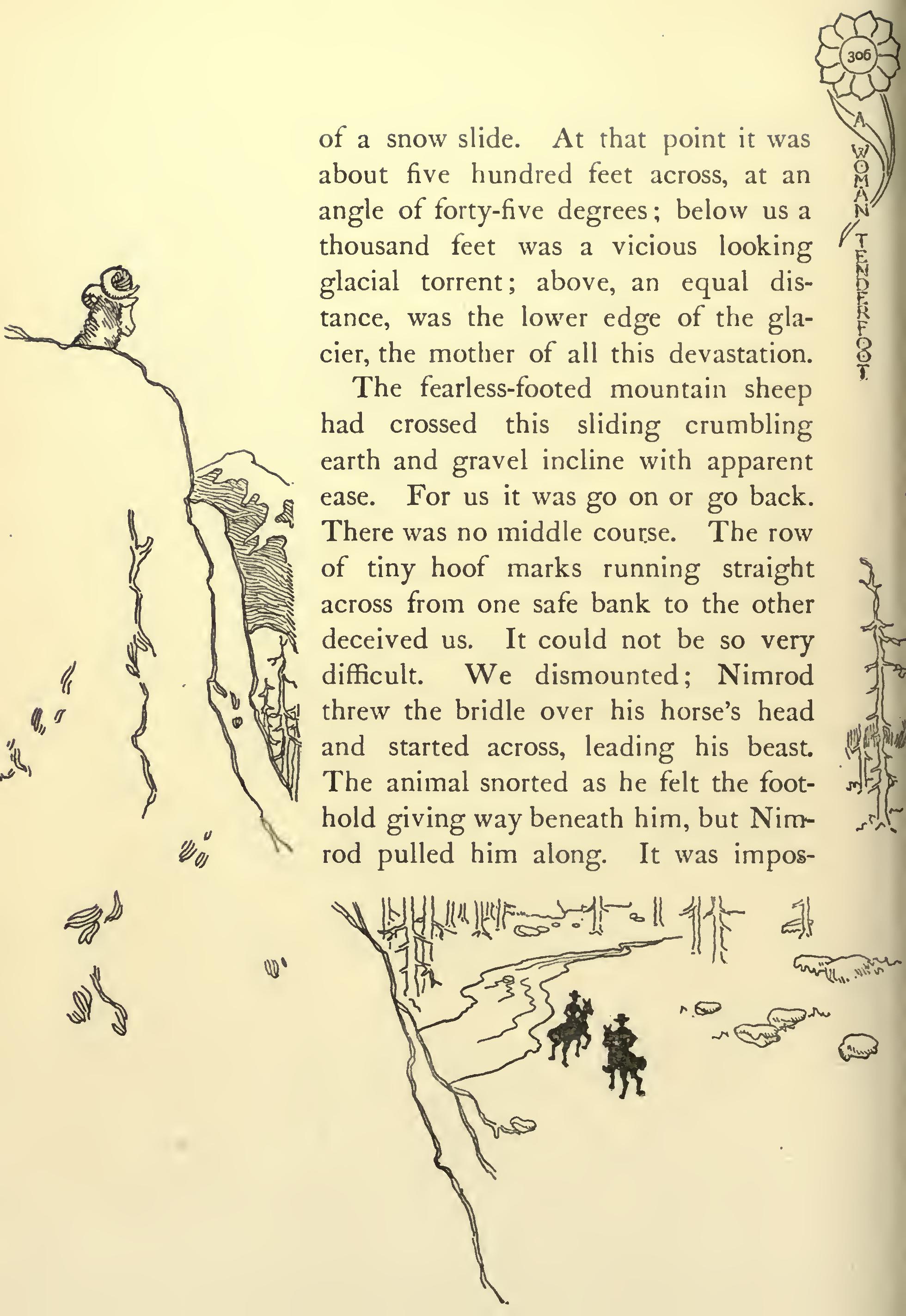 III. THE FIRST PLUNGE OF THE WOMAN TENDERFOOT.