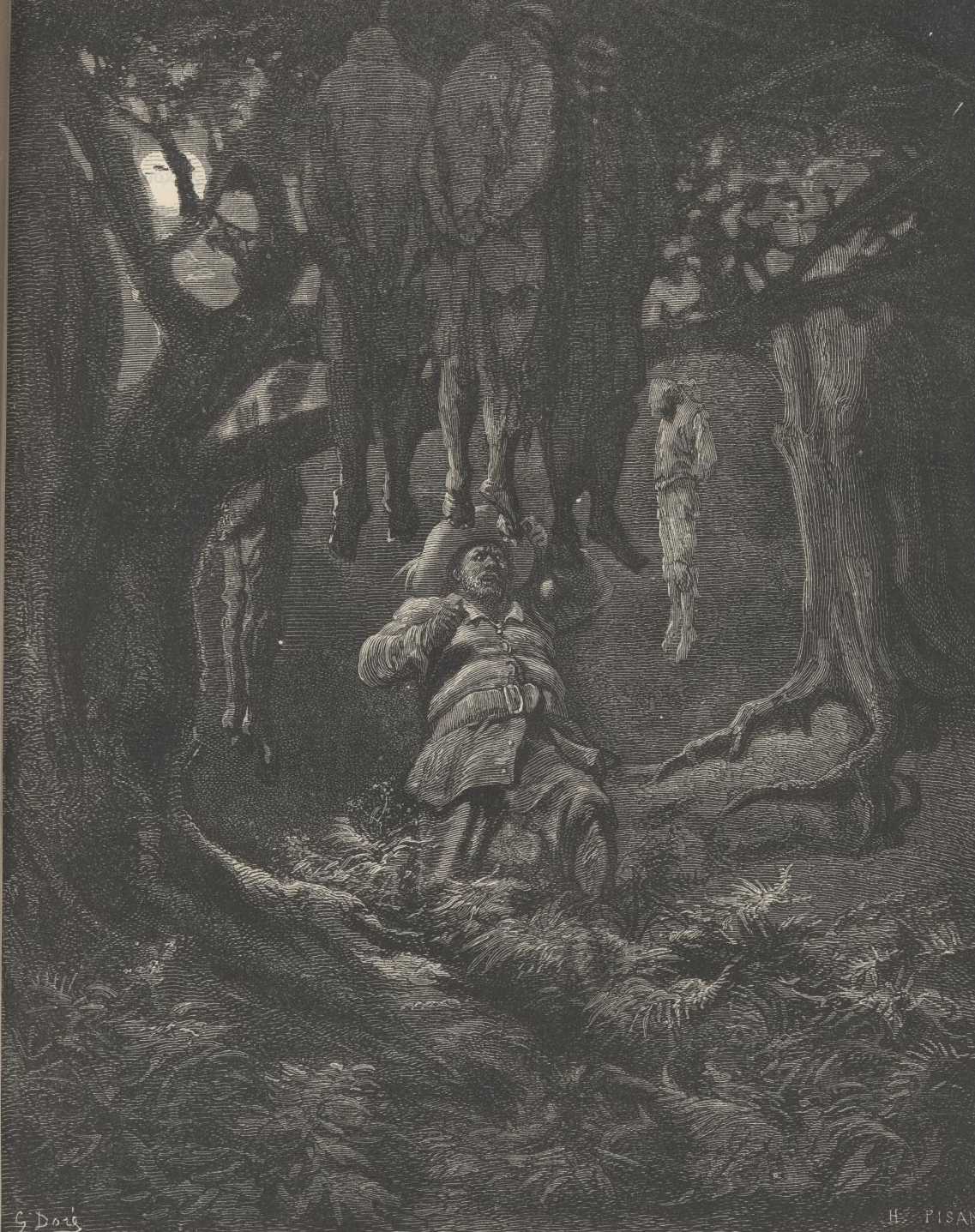 Night, longed for by Don Quixote with the greatest anxiety in the world, came at last, though it seemed to him that the wheels of Apollo’s car had broken down, and that the day was drawing itself out longer than usual, just as is the case with lovers, who never make the reckoning of their desires agree with time. They made their way at length in among some pleasant trees that stood a little distance from the road, and there vacating Rocinante’s saddle and Dapple’s pack-saddle, they stretched themselves on the green grass and made their supper off Sancho’s stores, and he making a powerful and flexible whip out of Dapple’s halter and headstall retreated about twenty paces from his master among some beech trees. Don Quixote seeing him march off with such resolution and spirit, said to him, “Take care, my friend, not to cut thyself to pieces; allow the lashes to wait for one another, and do not be in so great a hurry as to run thyself out of breath midway; I mean, do not lay on so strenuously as to make thy life fail thee before thou hast reached the desired number; and that thou mayest not lose by a card too much or too little, I will station myself apart and count on my rosary here the lashes thou givest thyself. May heaven help thee as thy good intention deserves.”