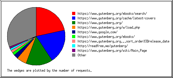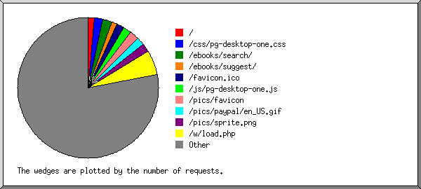| 1426 | 0.06% | 0.02 | 0.01% | http://gutenweb1.int.ibiblio.org/server-status |