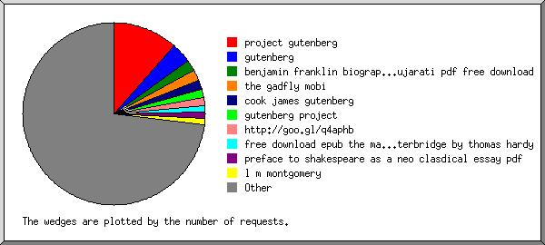 | 1420 | 0.06% | 0.03 | 0.01% | http://gutenweb3.int.ibiblio.org/server-status |